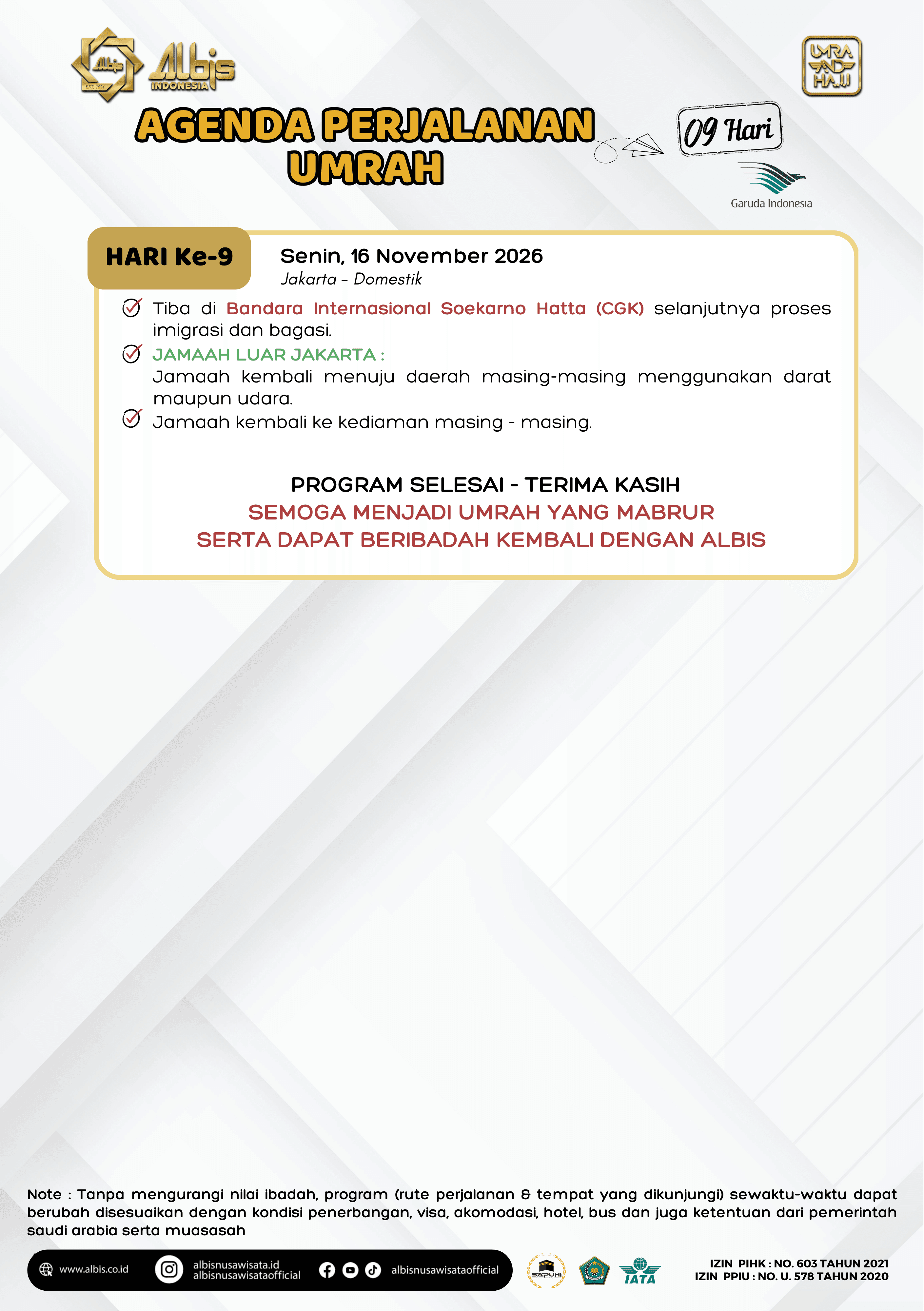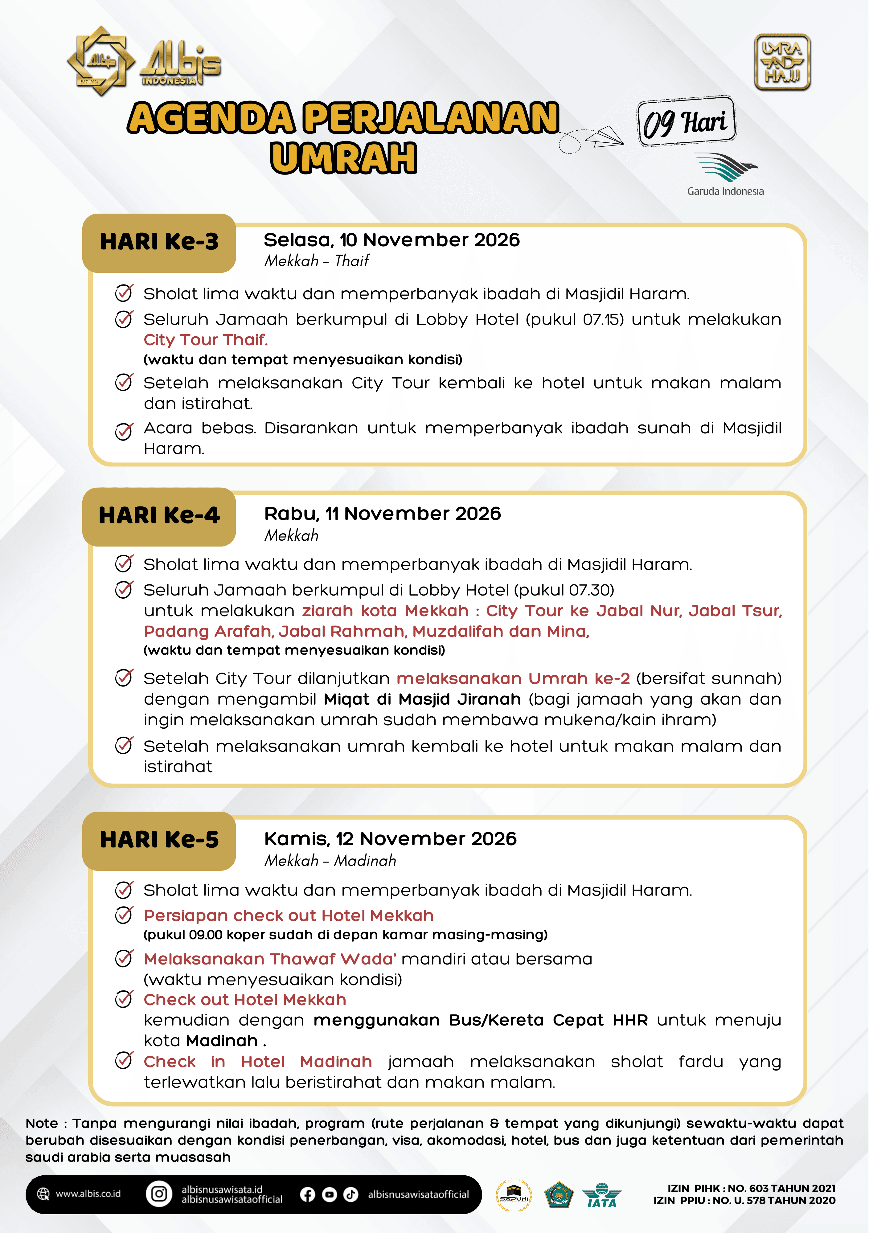 Paket Umrah yang ditawarkan oleh Albis sudah termasuk: