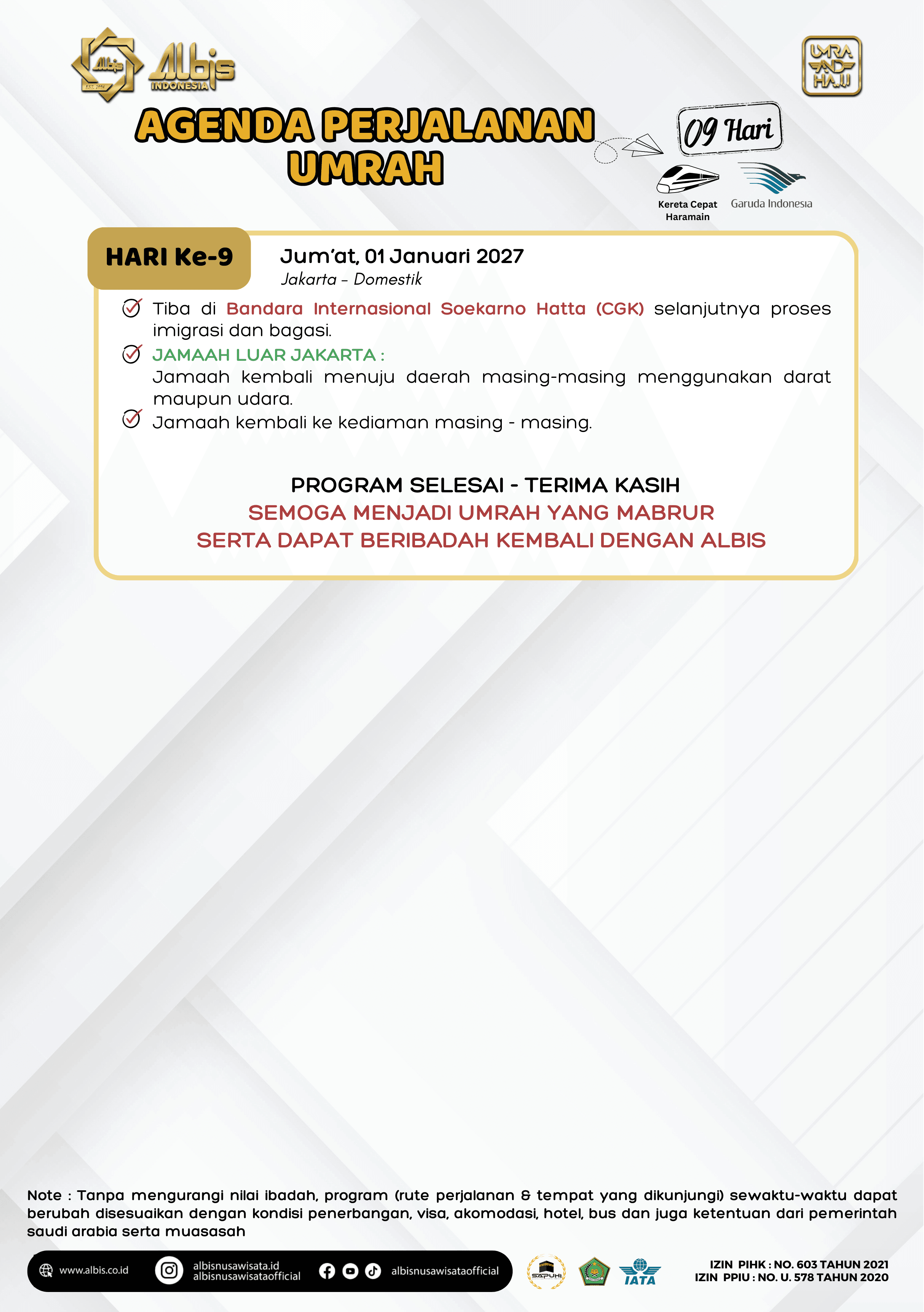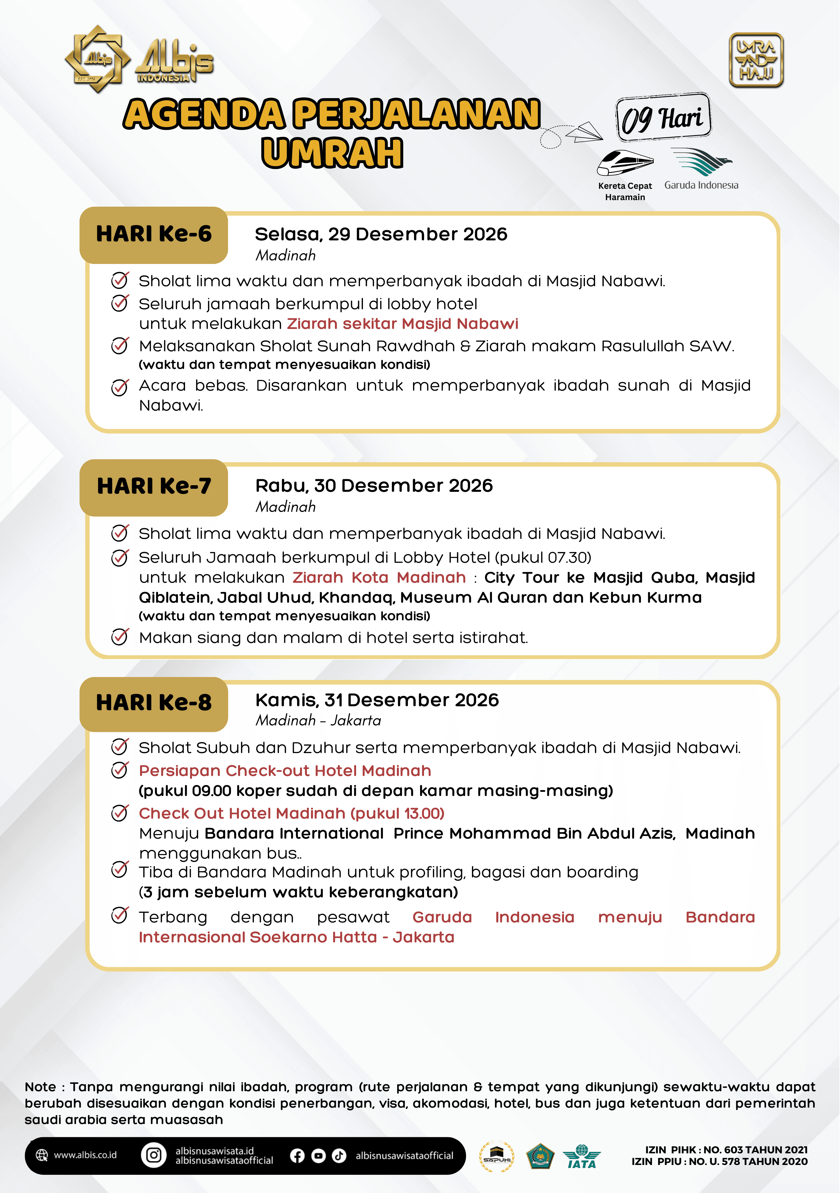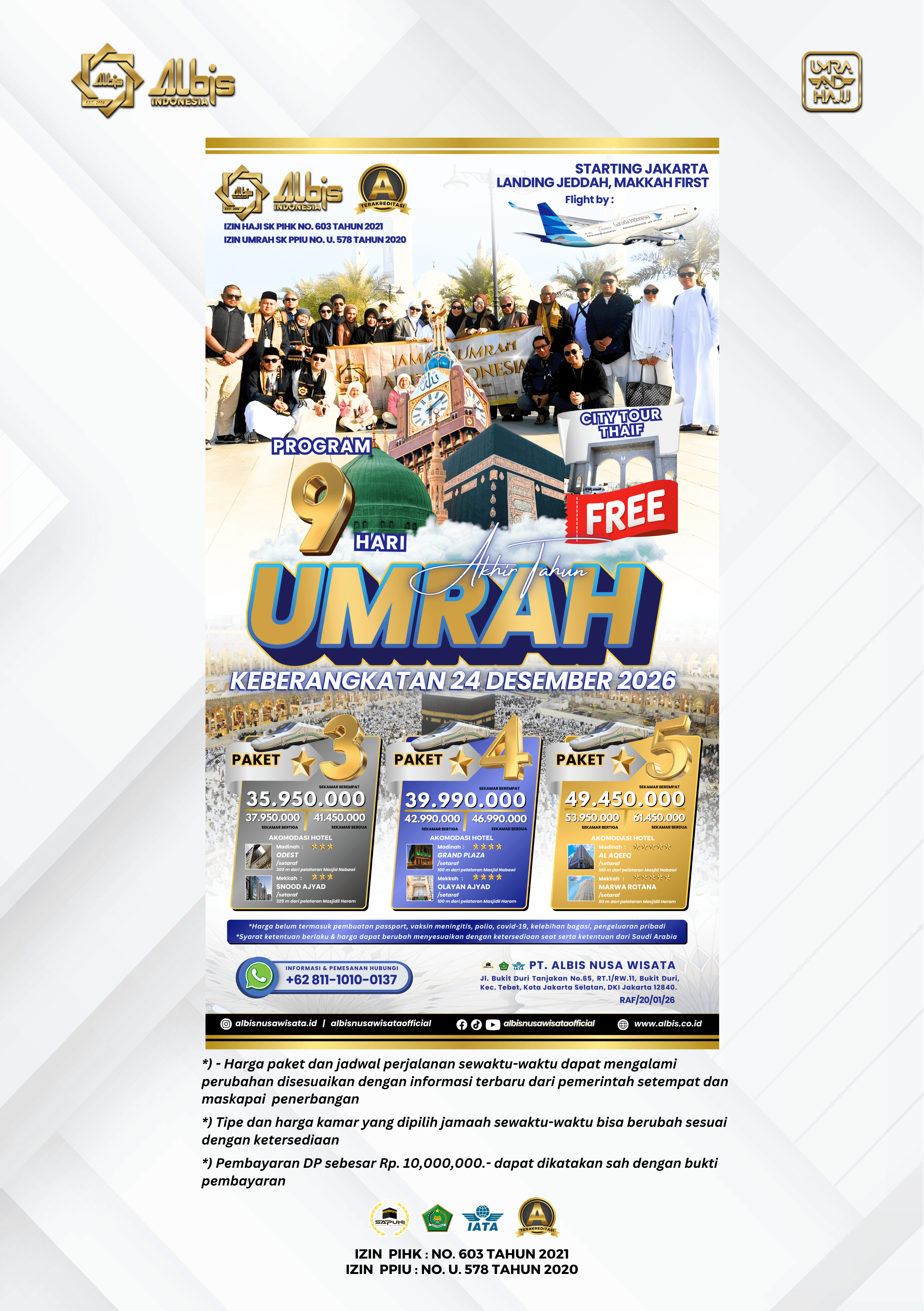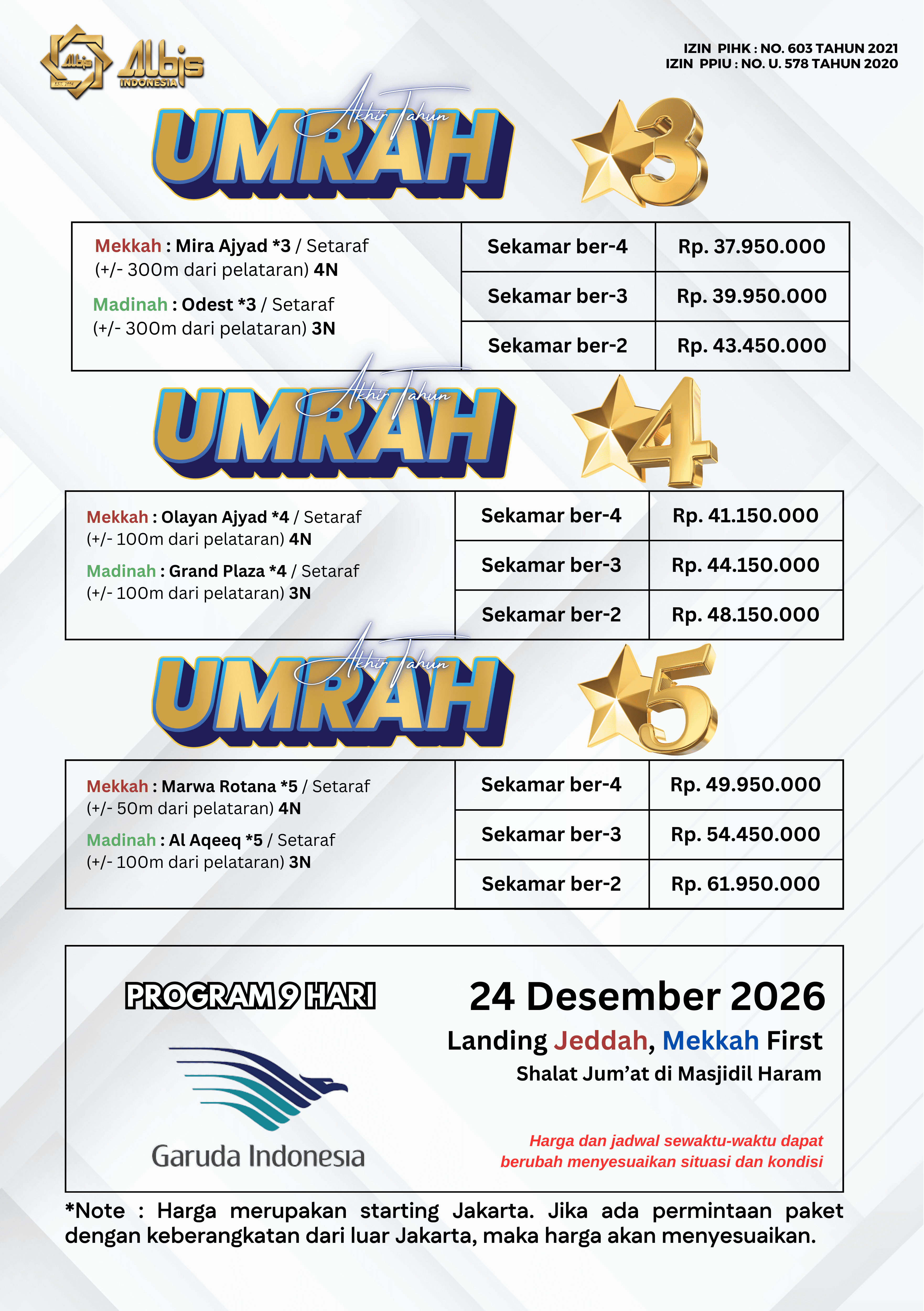 Paket Umrah yang ditawarkan oleh Albis sudah termasuk:
