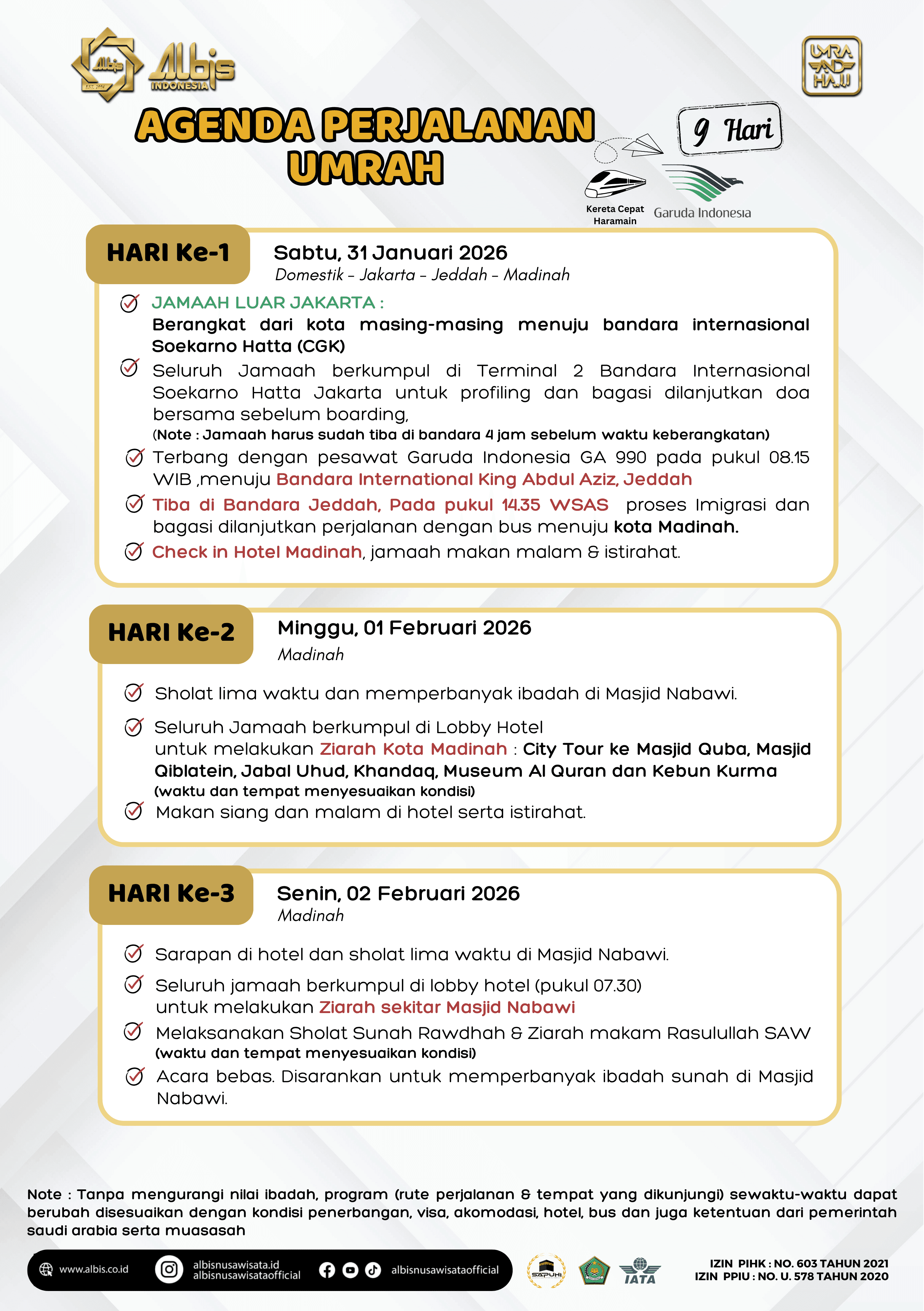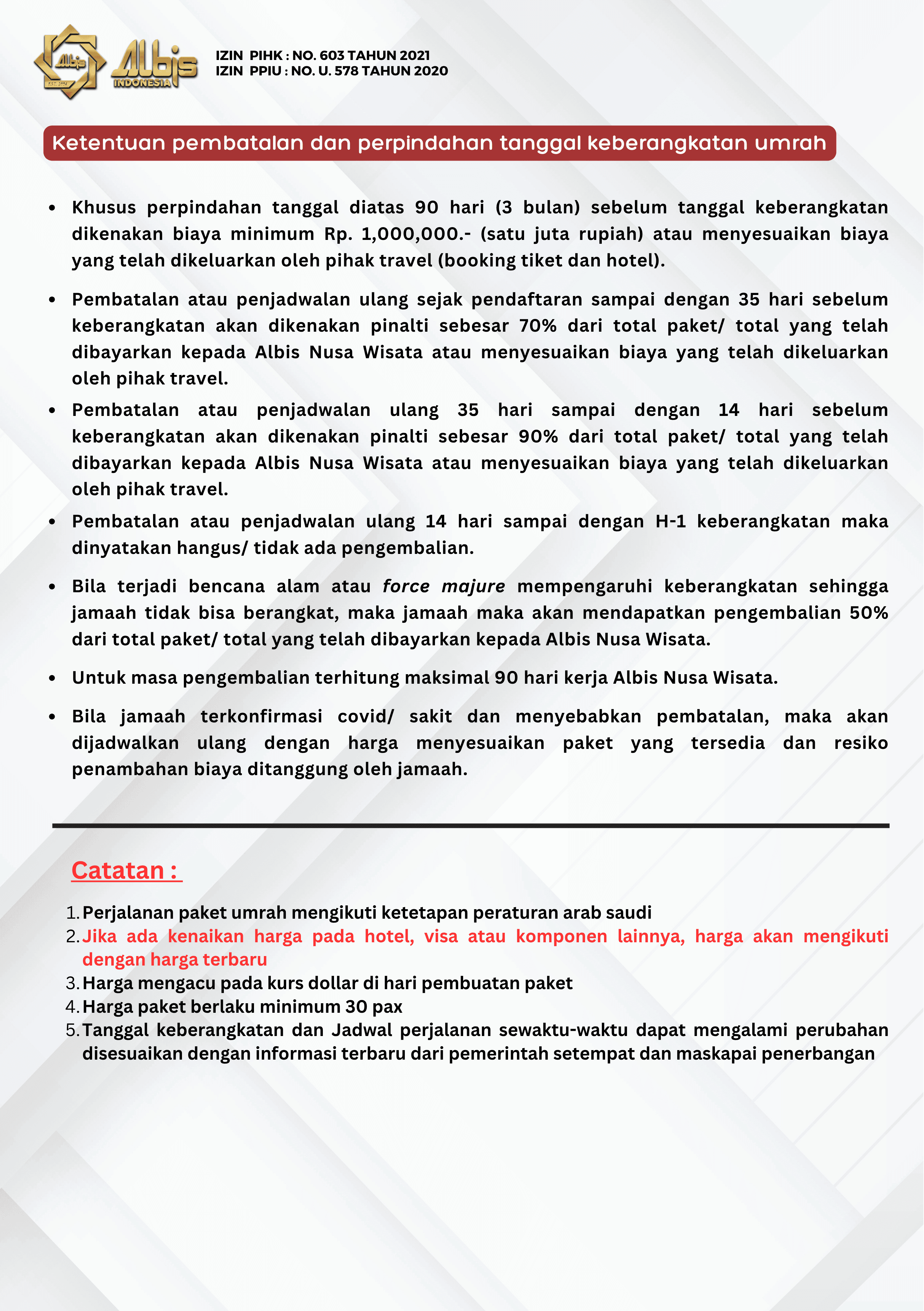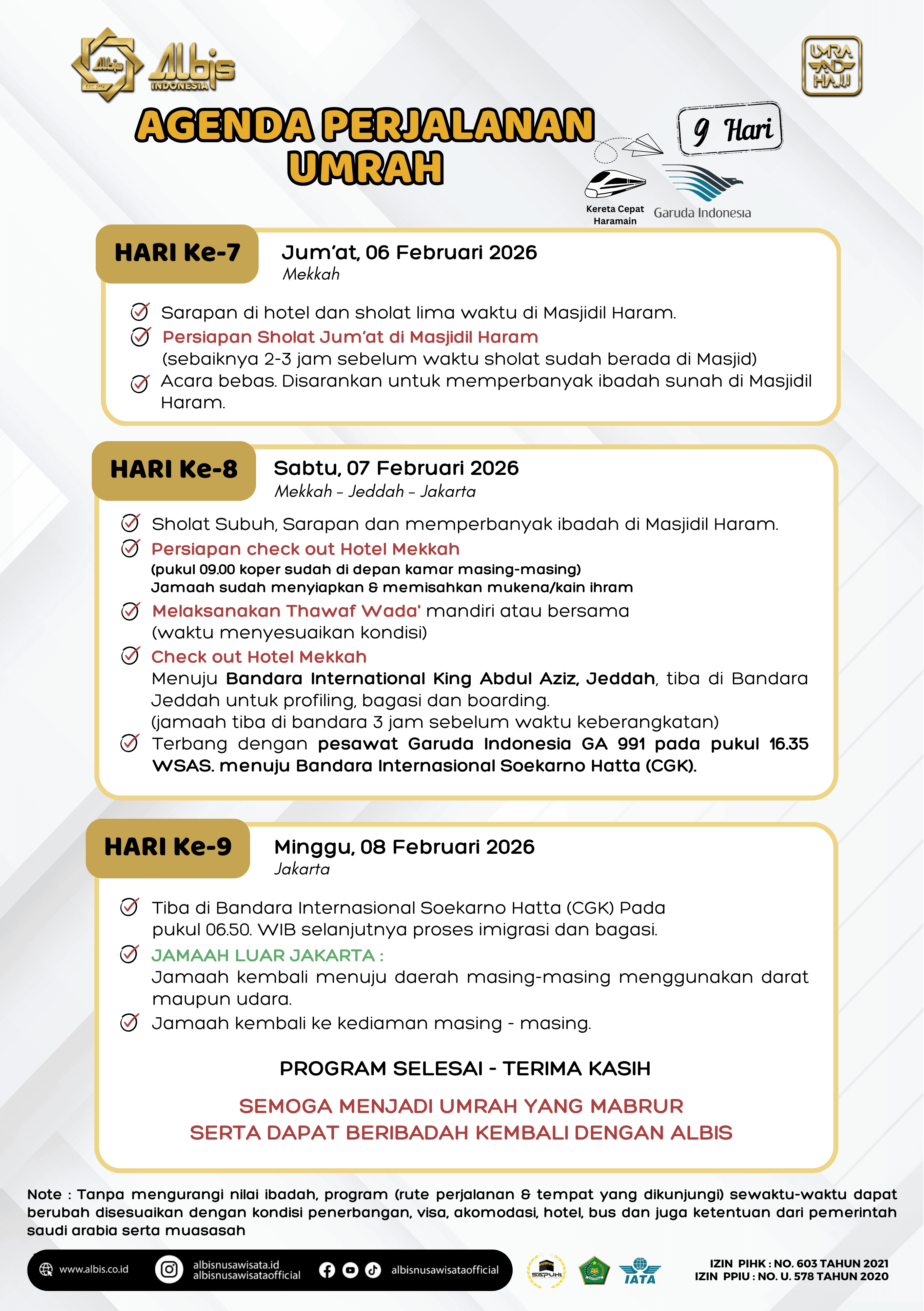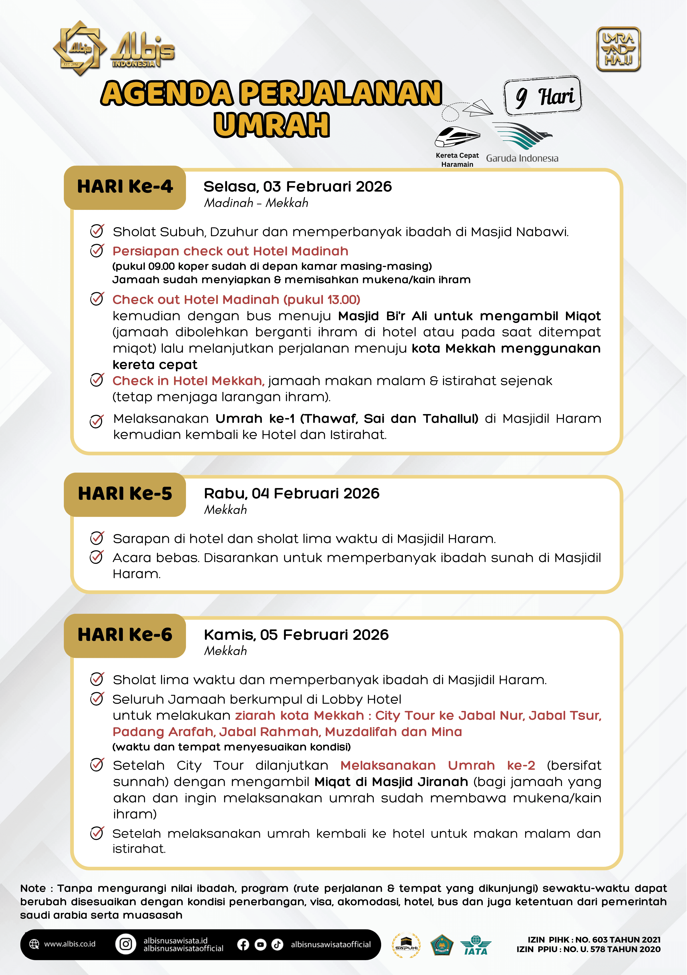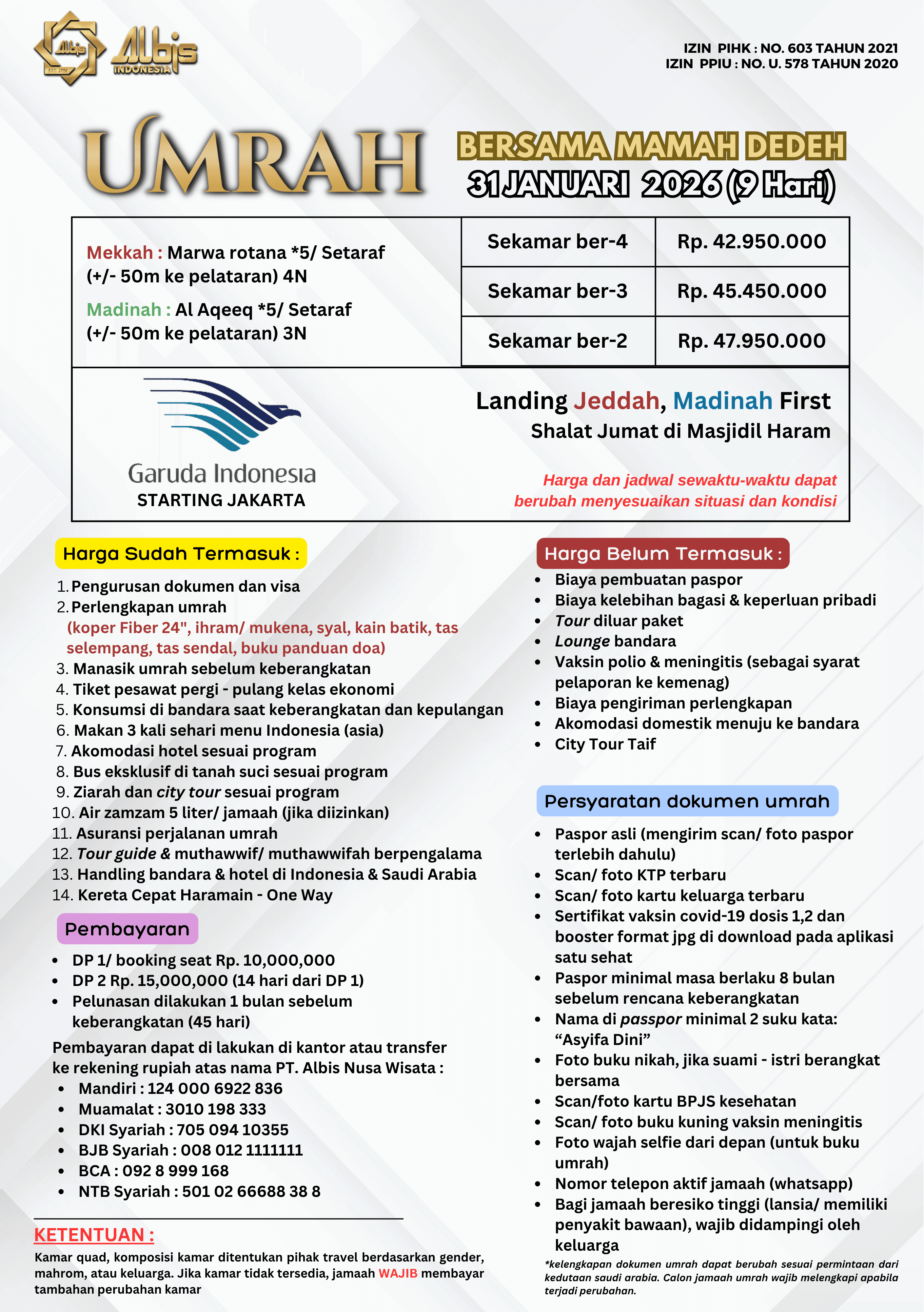 Paket Umrah yang ditawarkan oleh albis sudah termasuk: