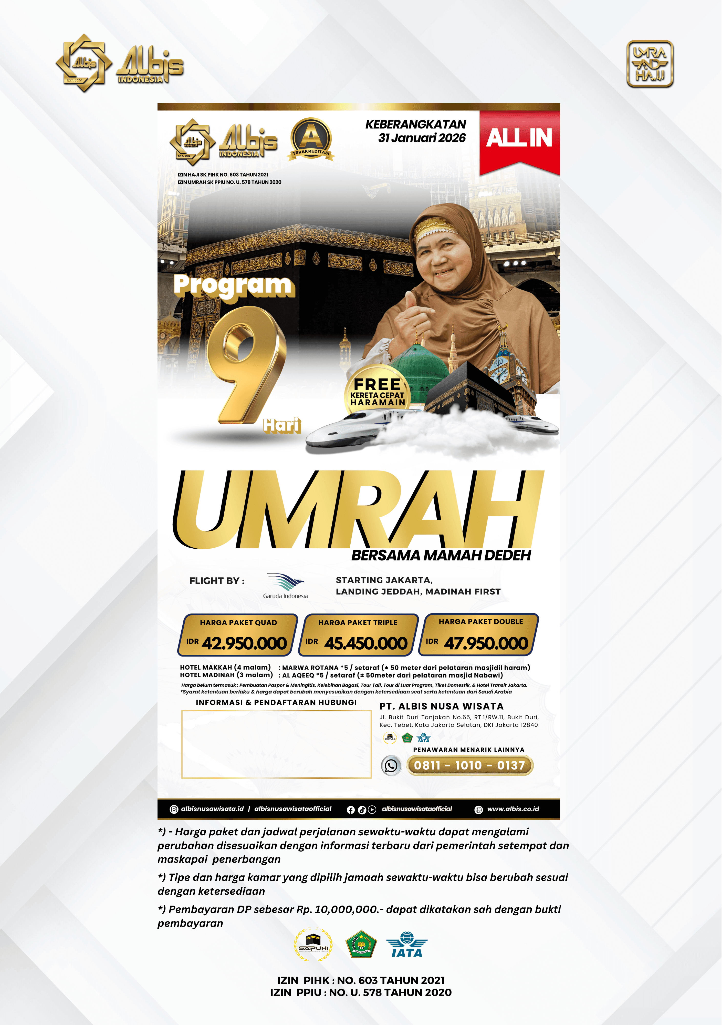 Paket Umrah yang ditawarkan oleh Albis adalah salah satu pilihan yang sangat menarik bagi mereka yang bercita-cita untuk melaksanakan ibadah Umrah ke Tanah Suci. Nikmati Perjalanan Spiritual yang Nyaman dan Memorable bersama Albis.