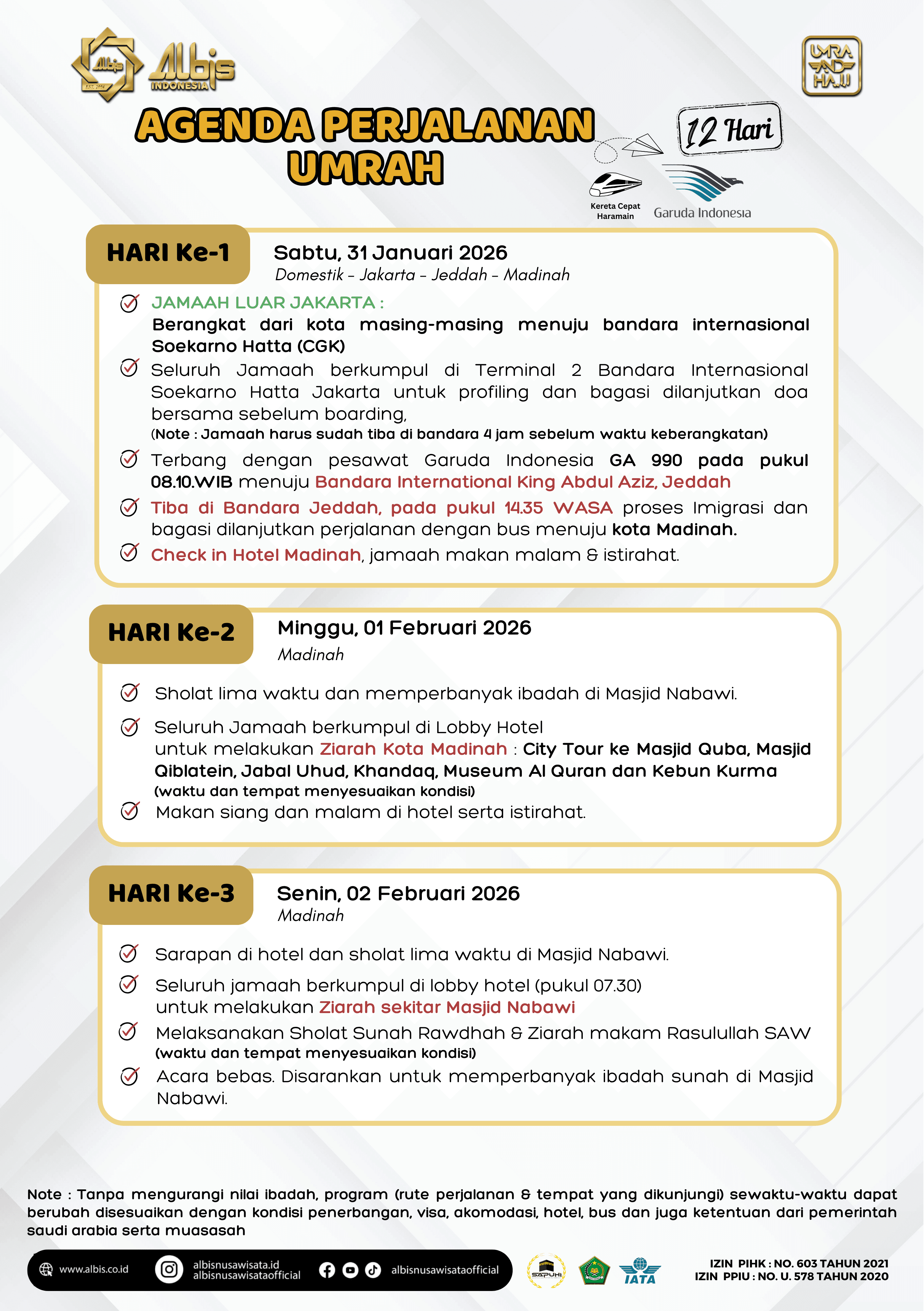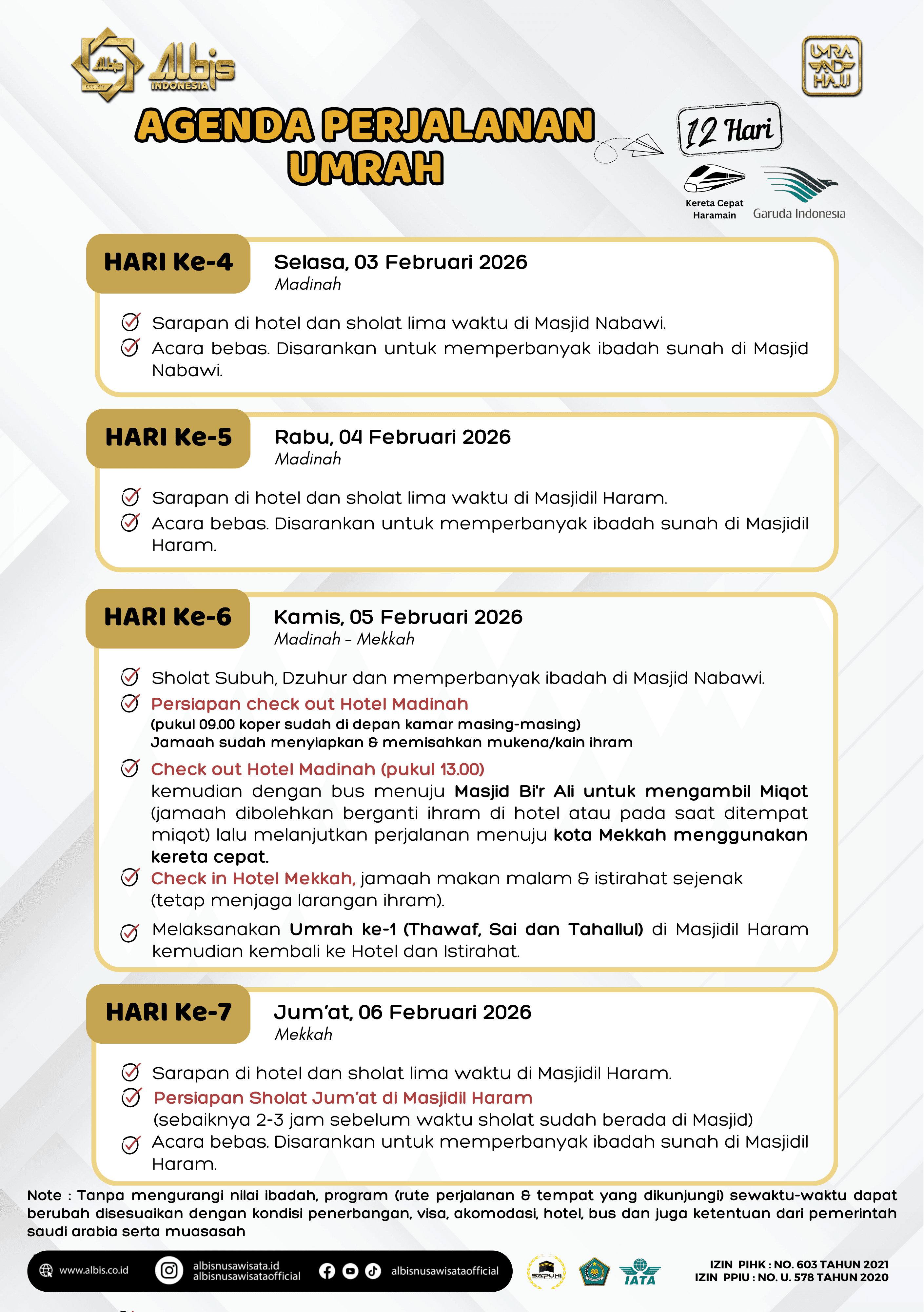 Paket Umrah yang ditawarkan oleh Albis adalah salah satu pilihan yang sangat menarik bagi mereka yang bercita-cita untuk melaksanakan ibadah Umrah ke Tanah Suci. Nikmati Perjalanan Spiritual yang Nyaman dan Memorable bersama Albis.