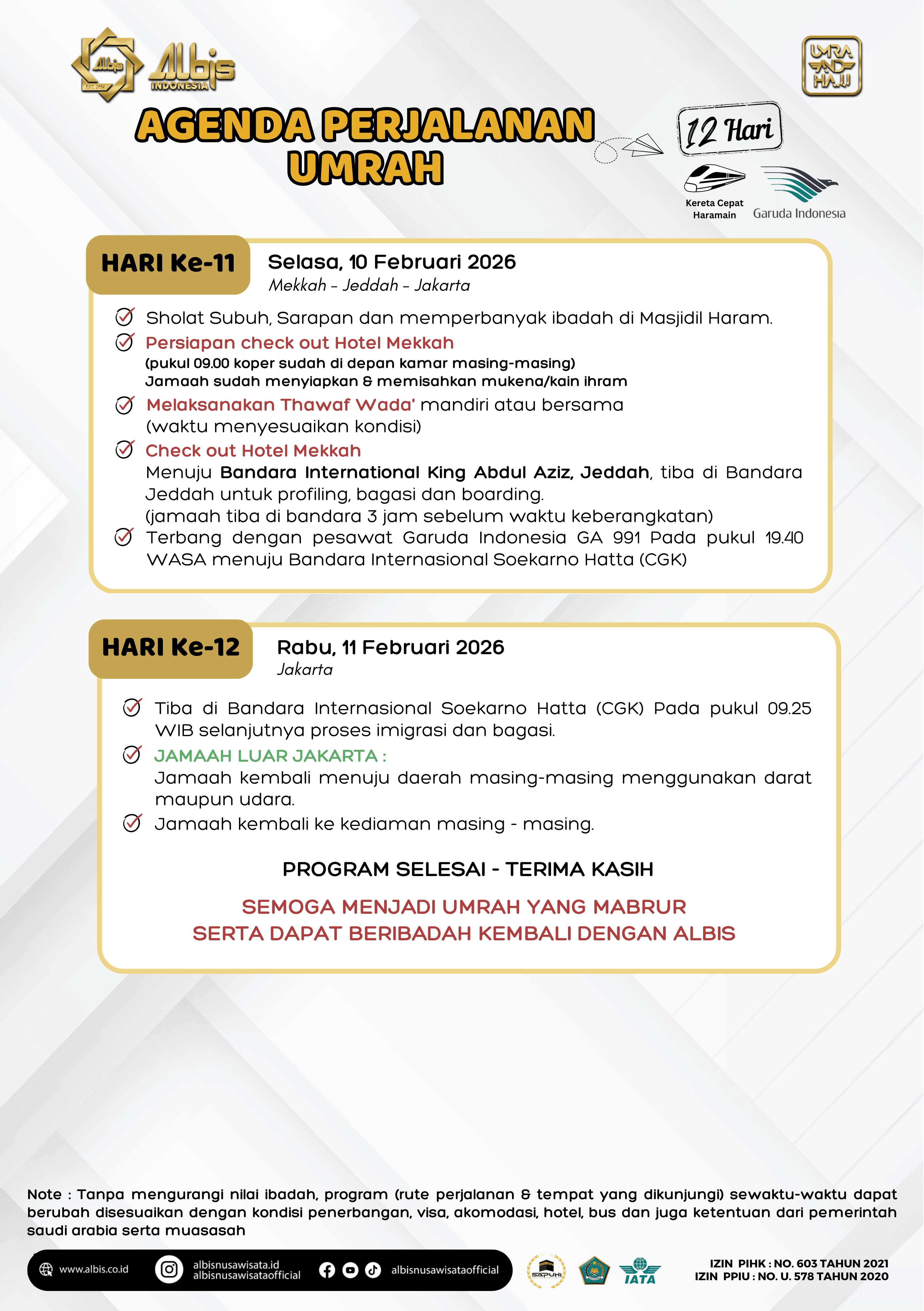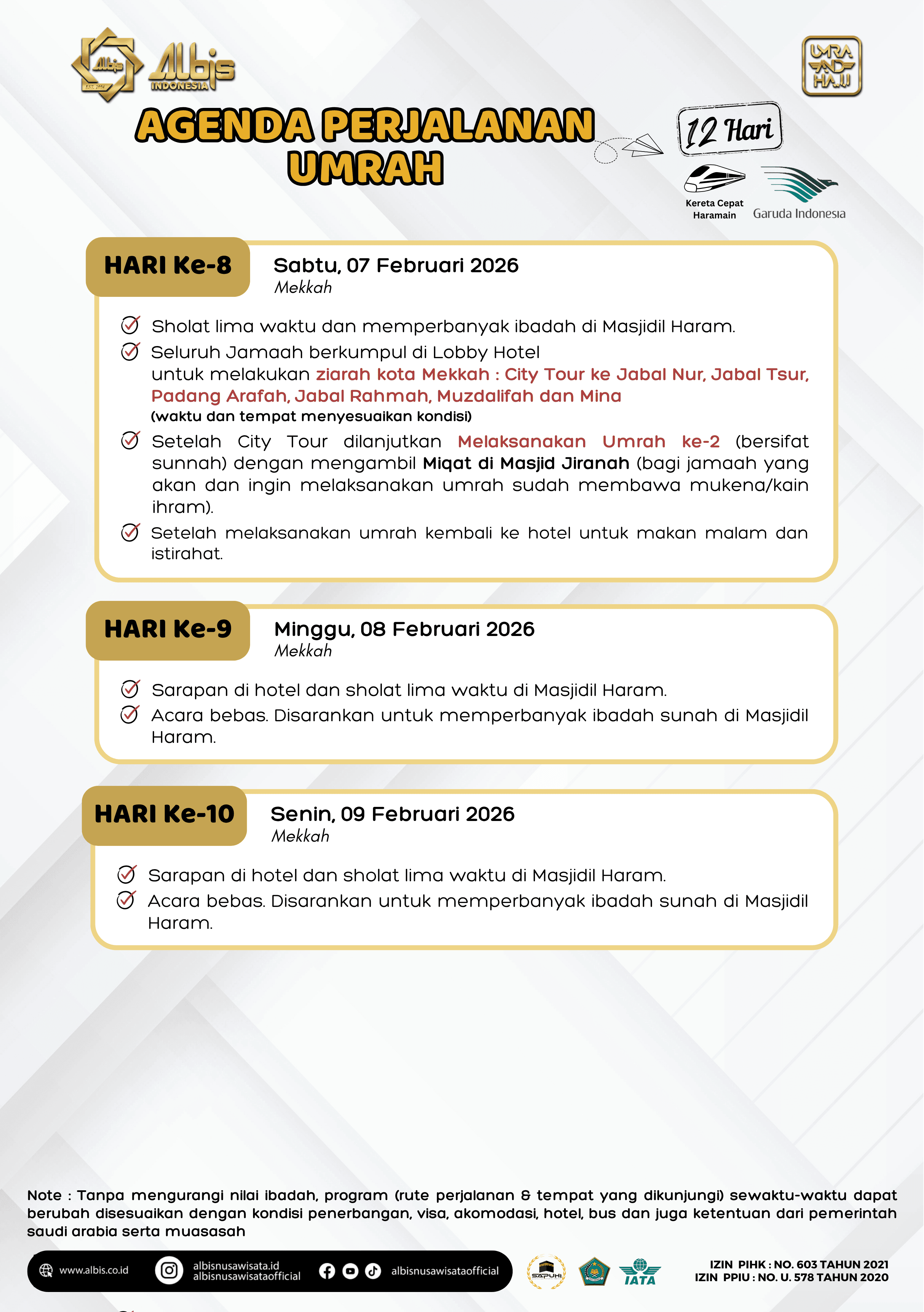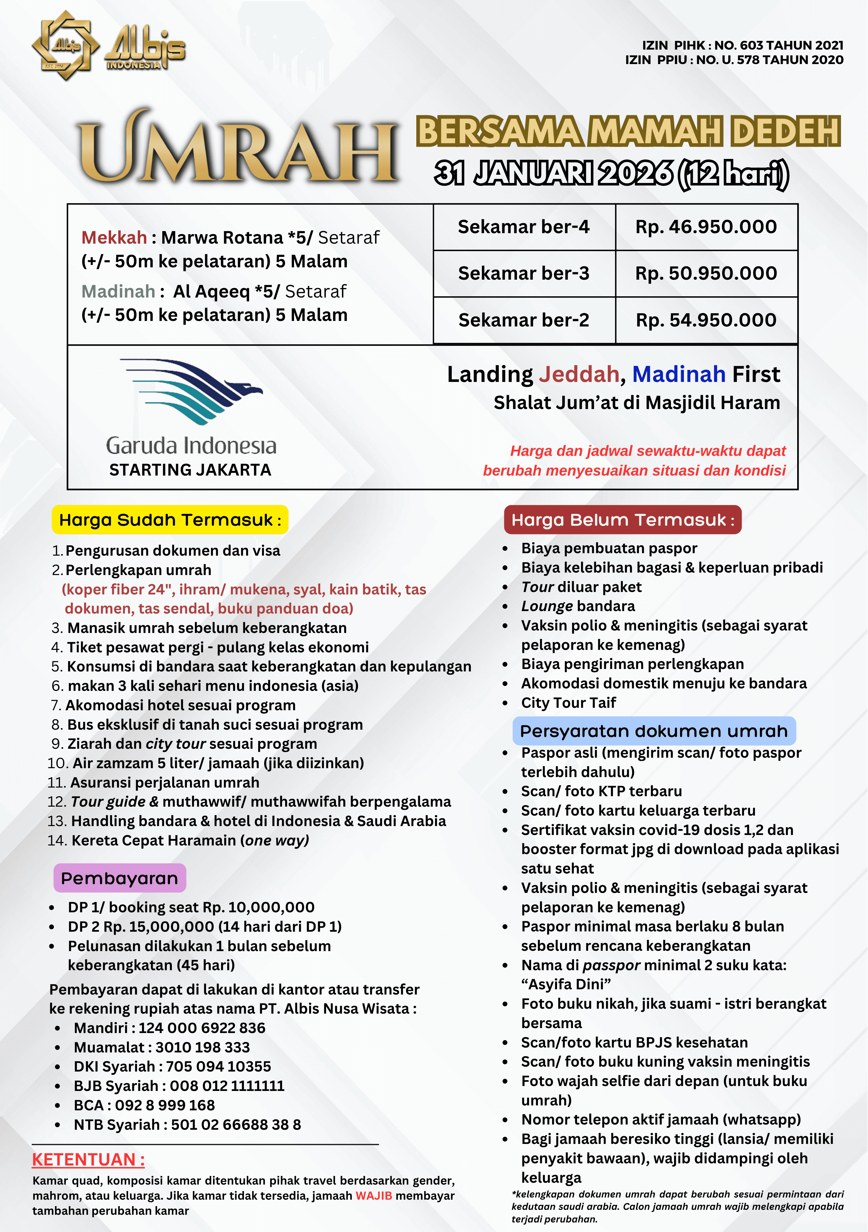 Paket Umrah yang ditawarkan oleh albis sudah termasuk: