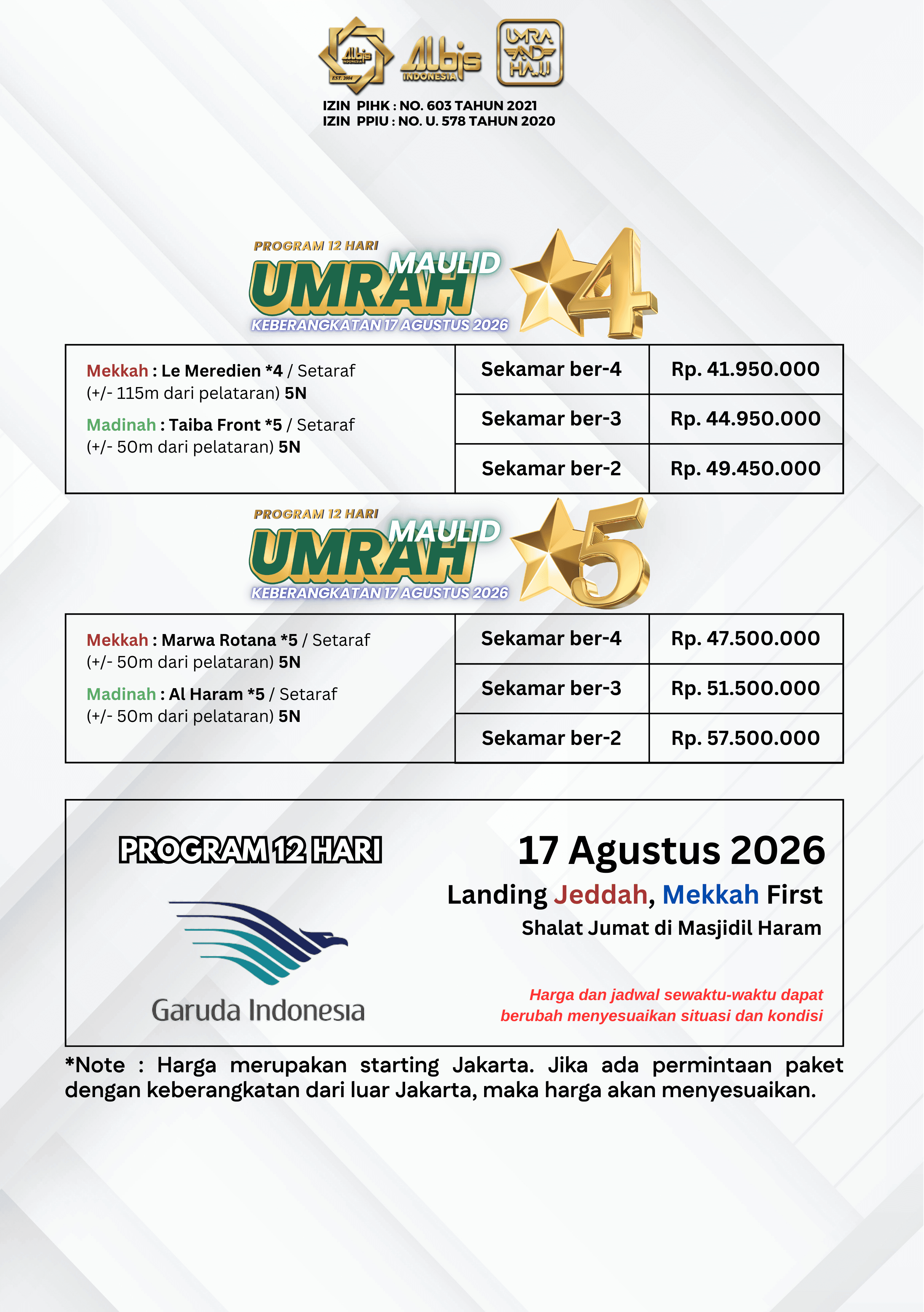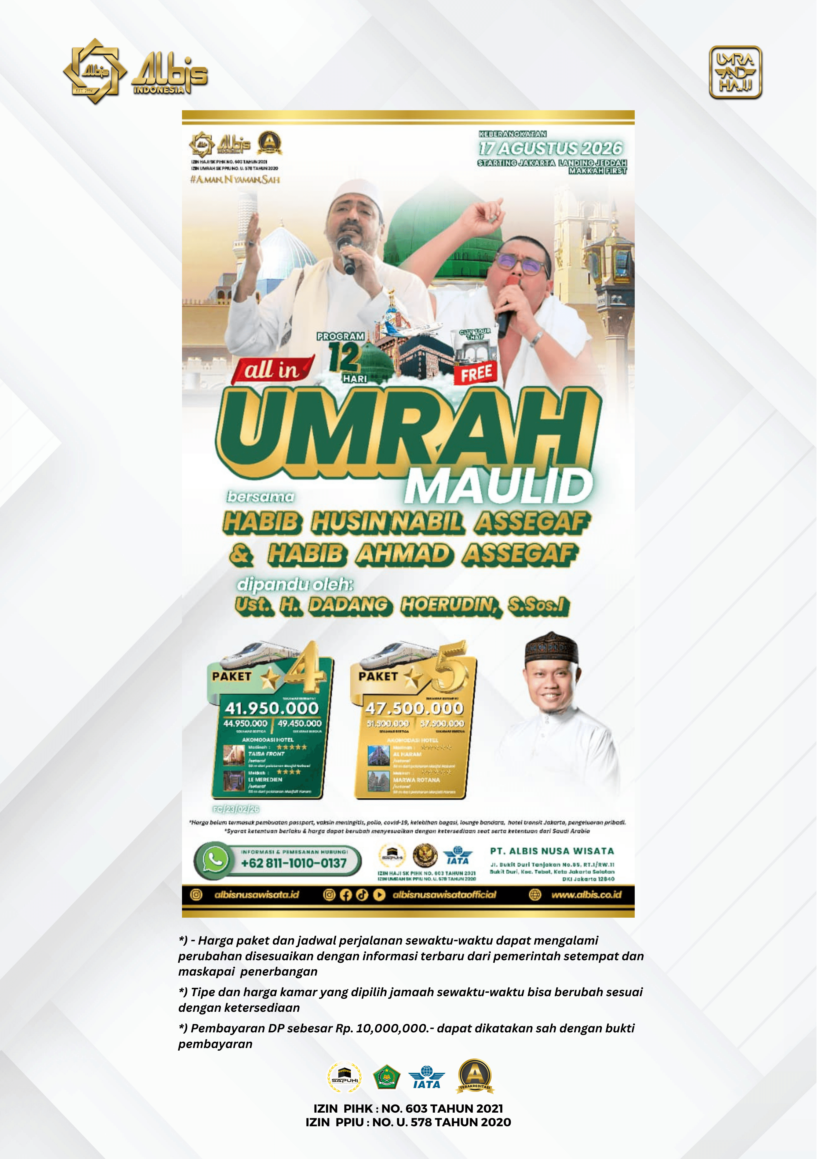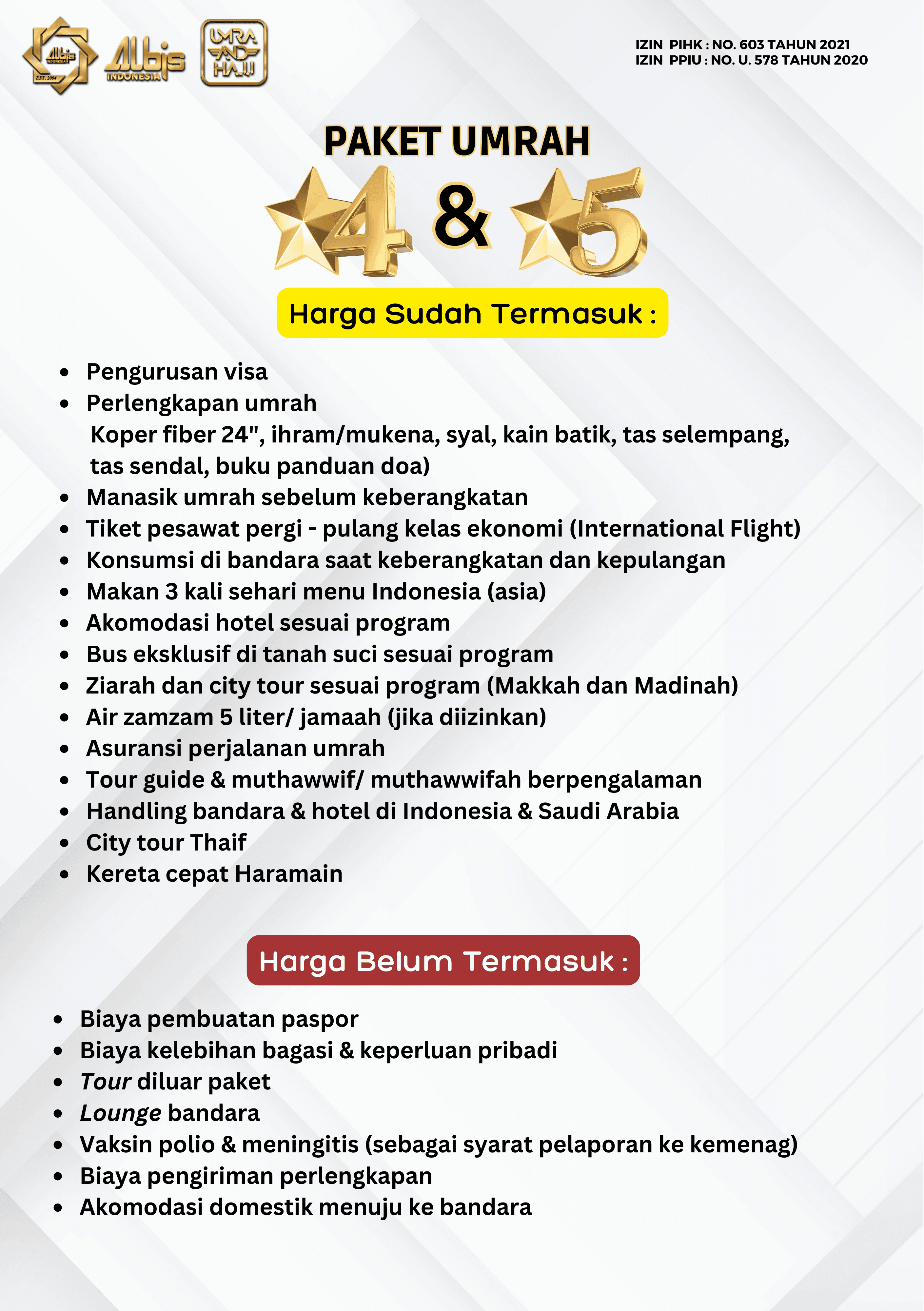 Paket Umrah yang ditawarkan oleh Albis sudah termasuk: