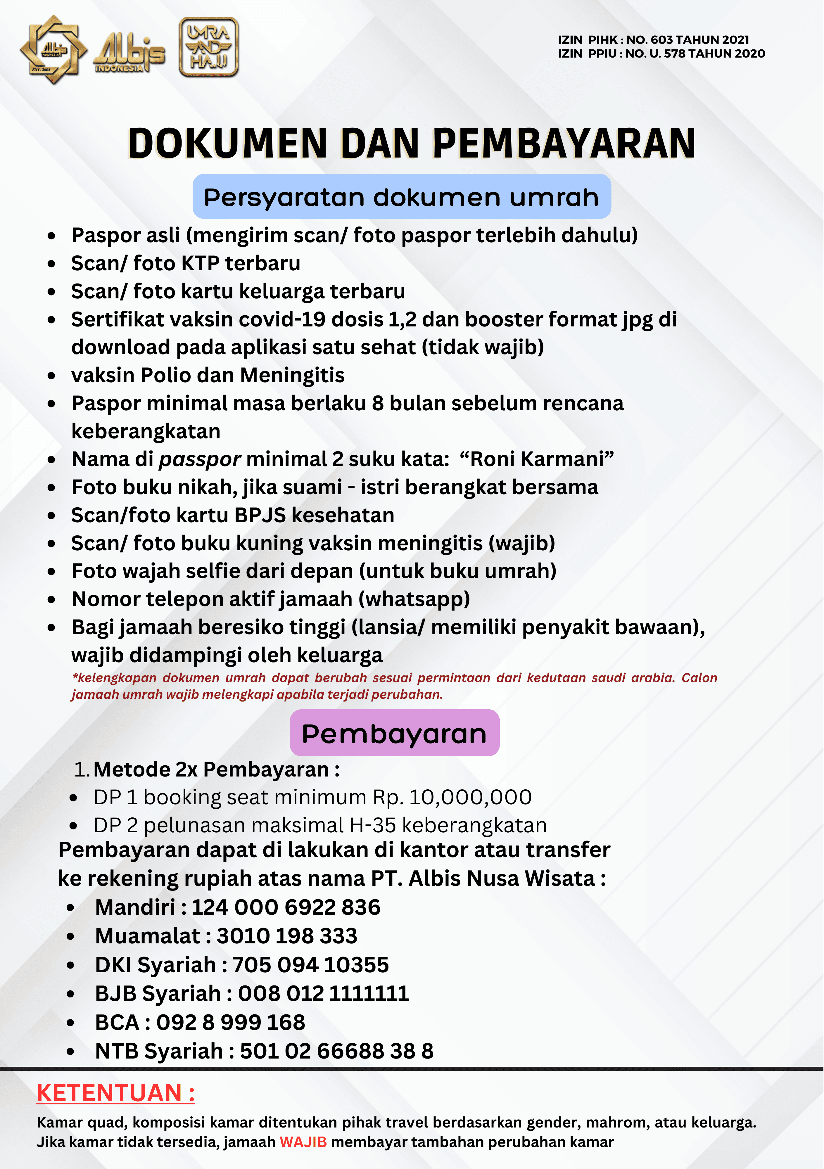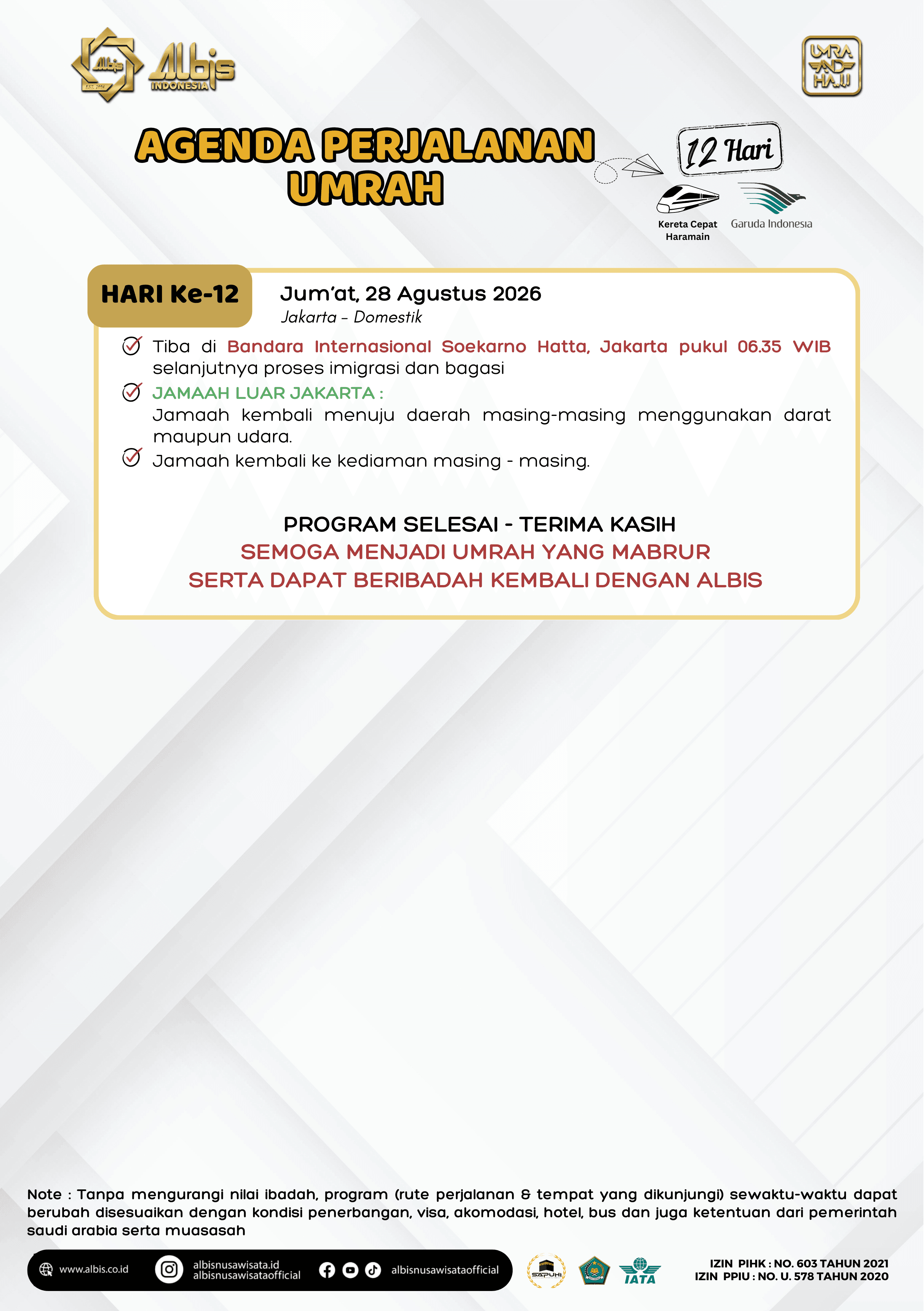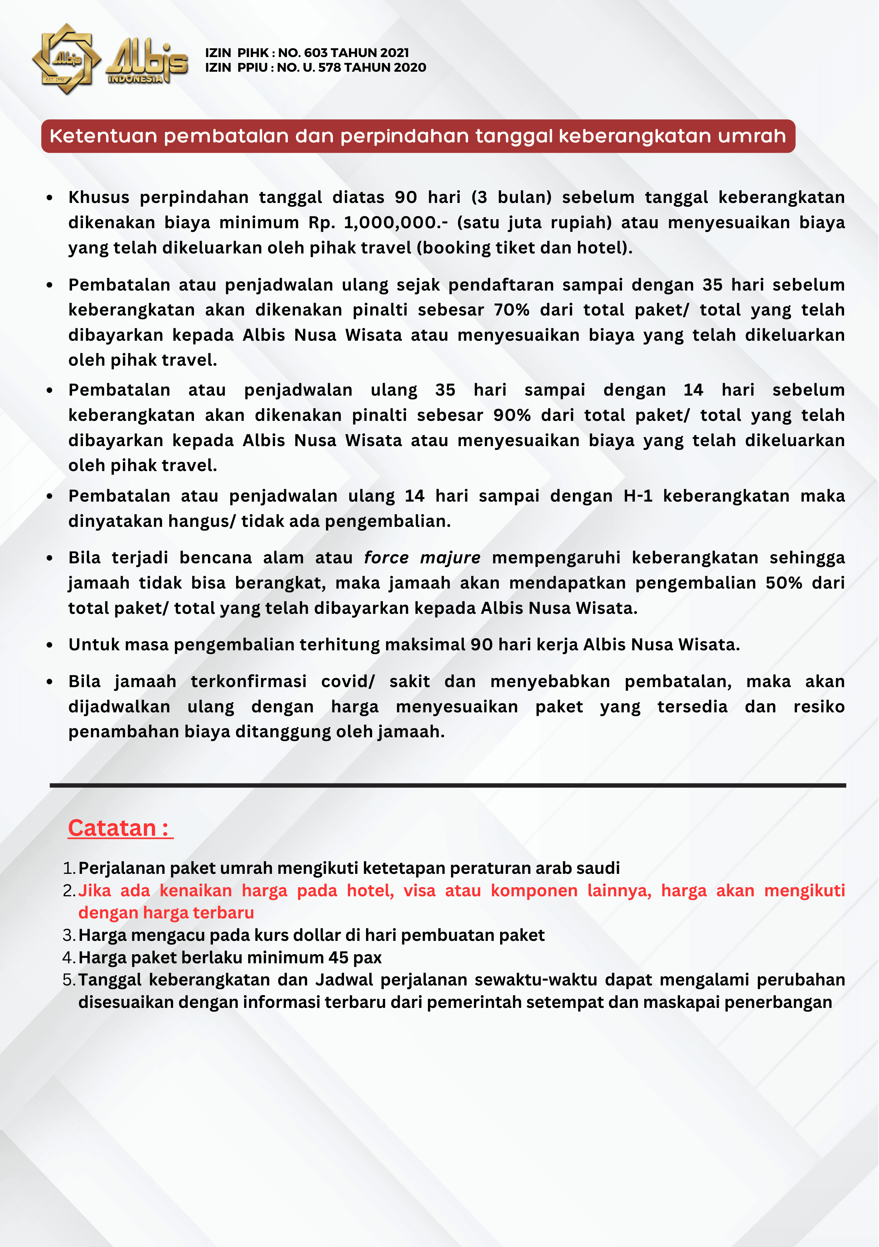 Paket Umrah yang ditawarkan oleh Albis sudah termasuk:
