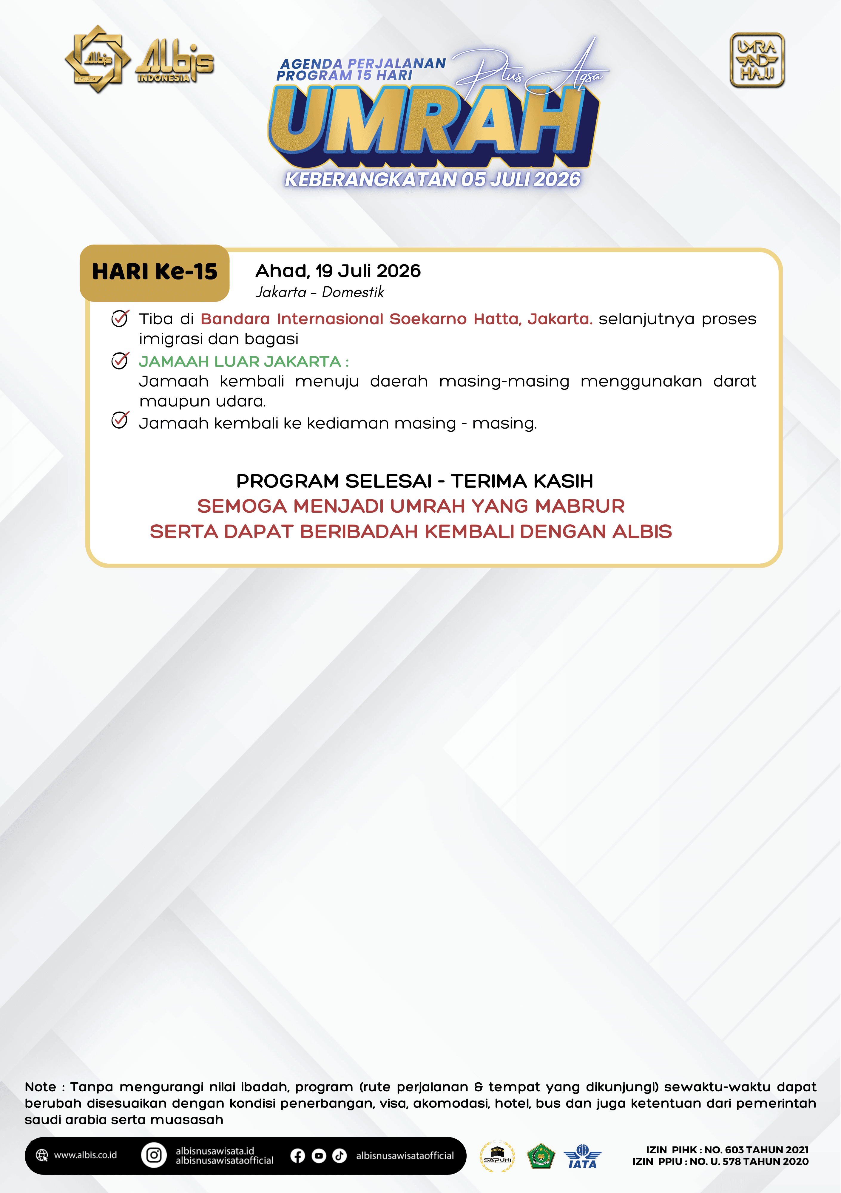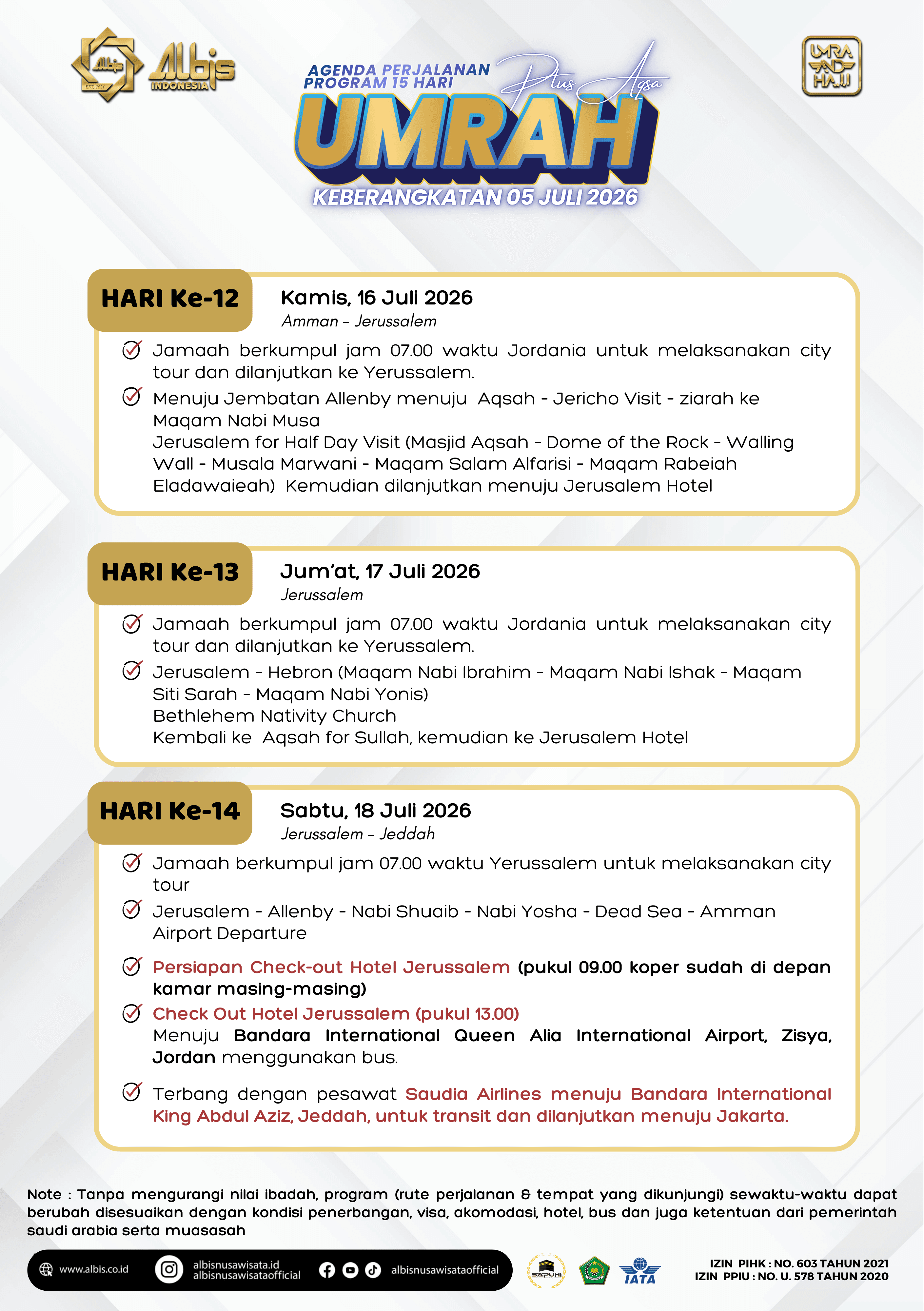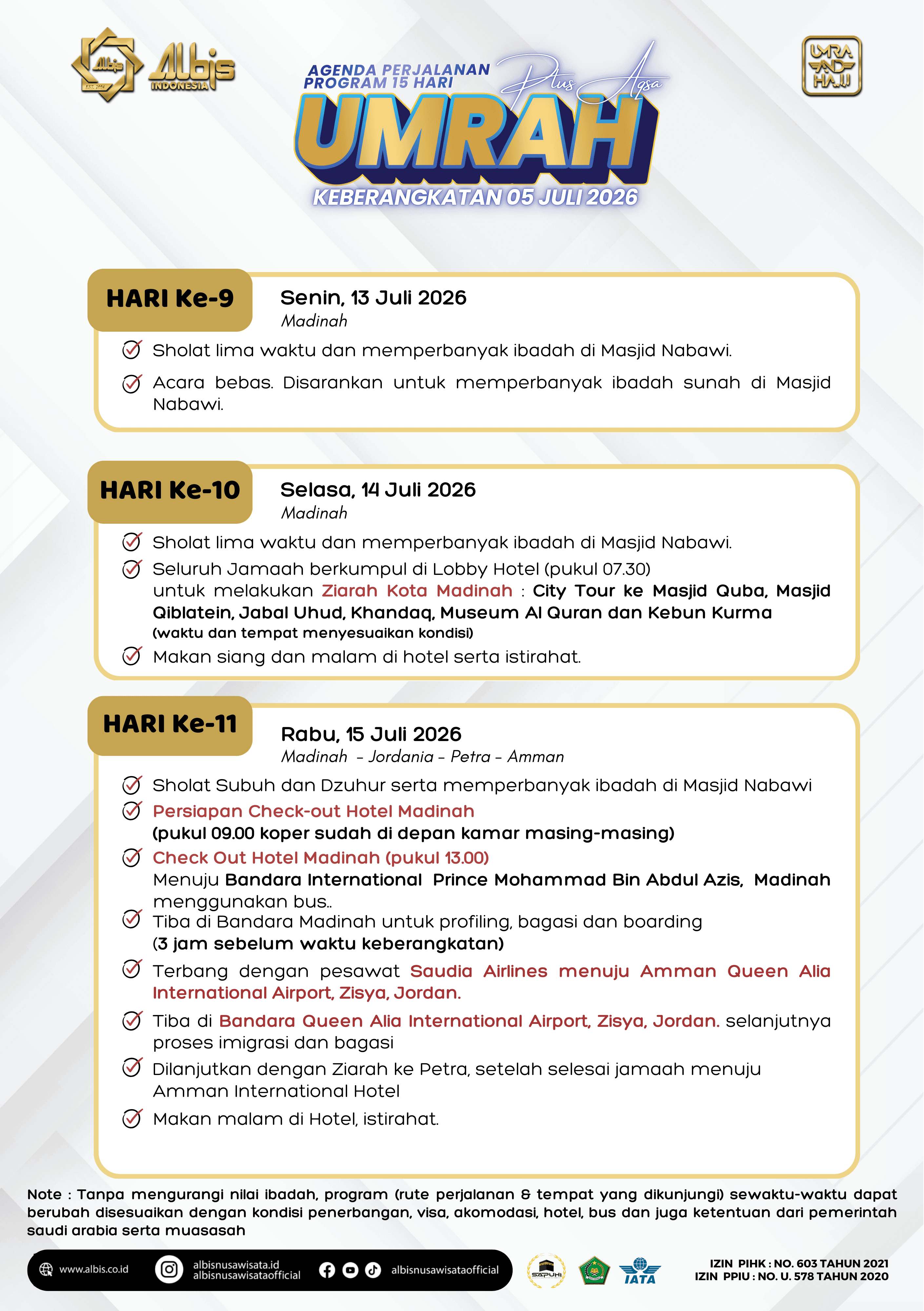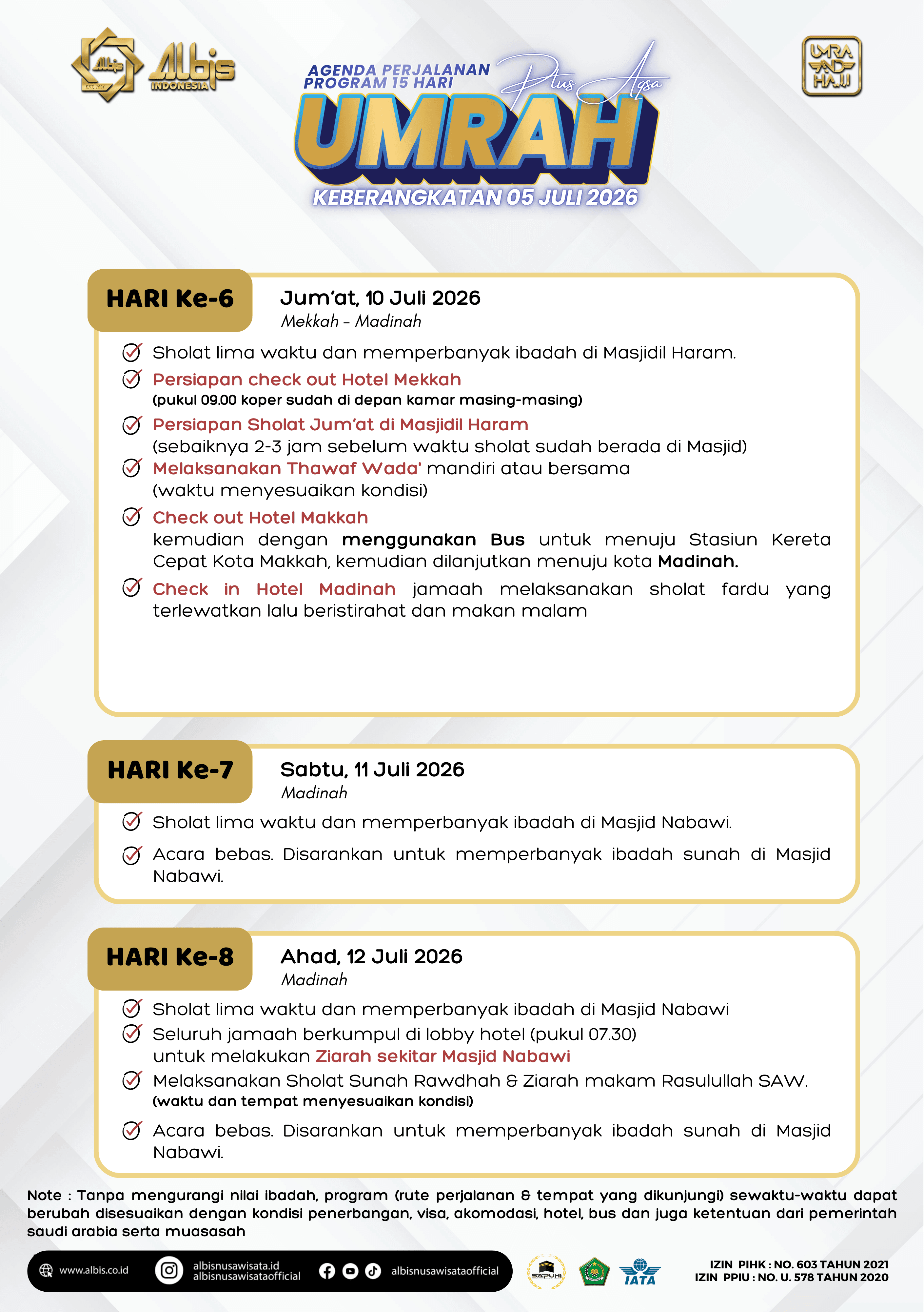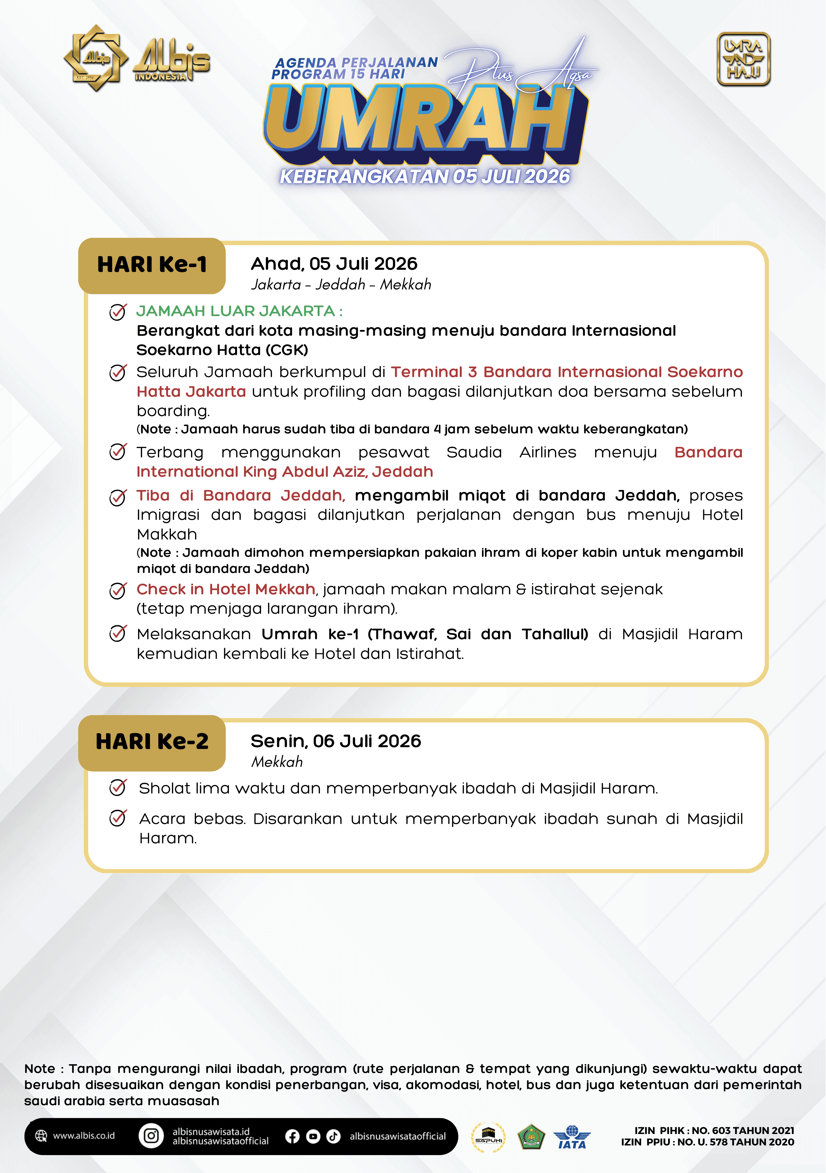 Paket Umrah yang ditawarkan oleh Albis adalah salah satu pilihan yang sangat menarik bagi mereka yang bercita-cita untuk melaksanakan ibadah Umrah ke Tanah Suci. Nikmati Perjalanan Spiritual yang Nyaman dan Memorable bersama Albis.