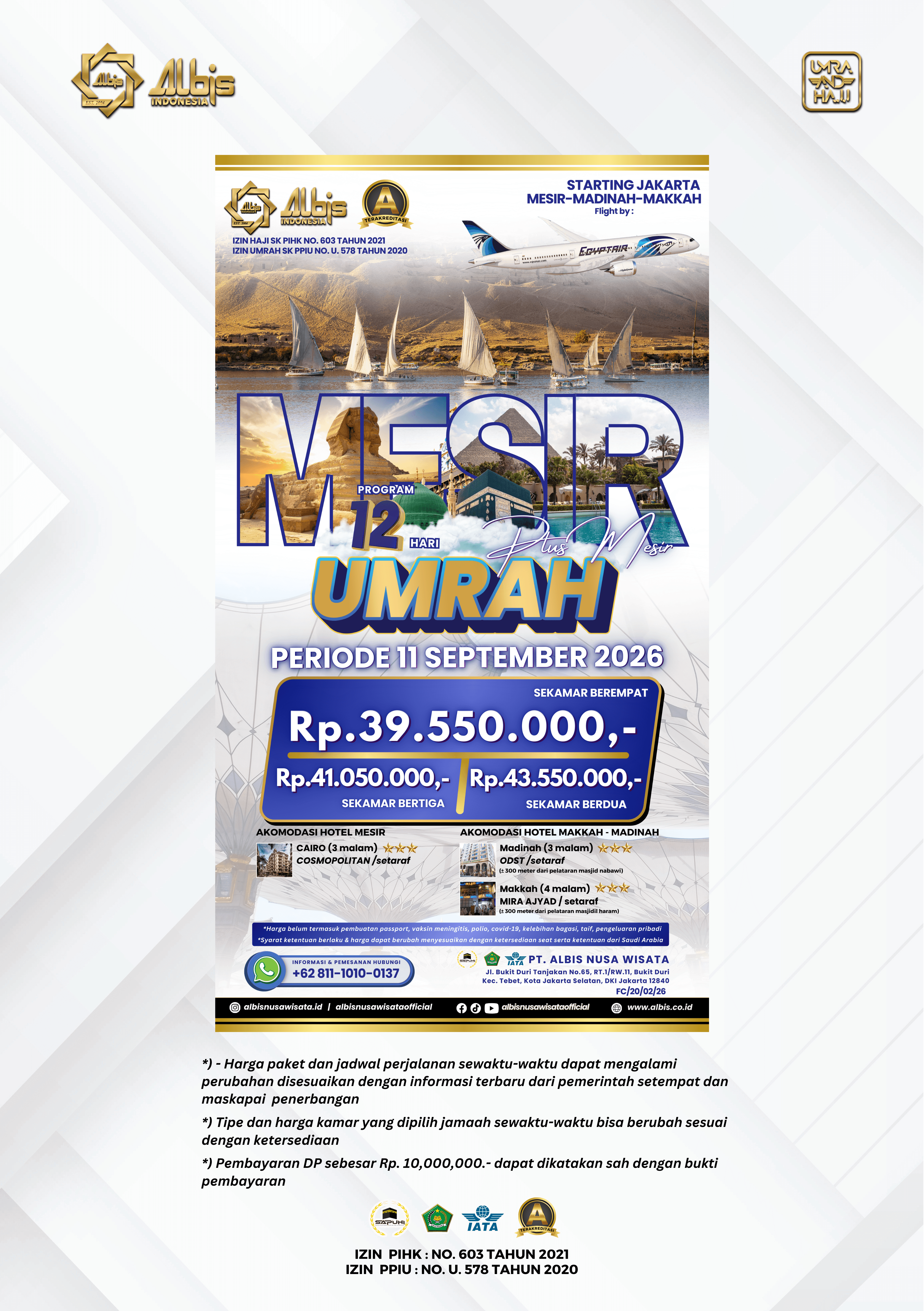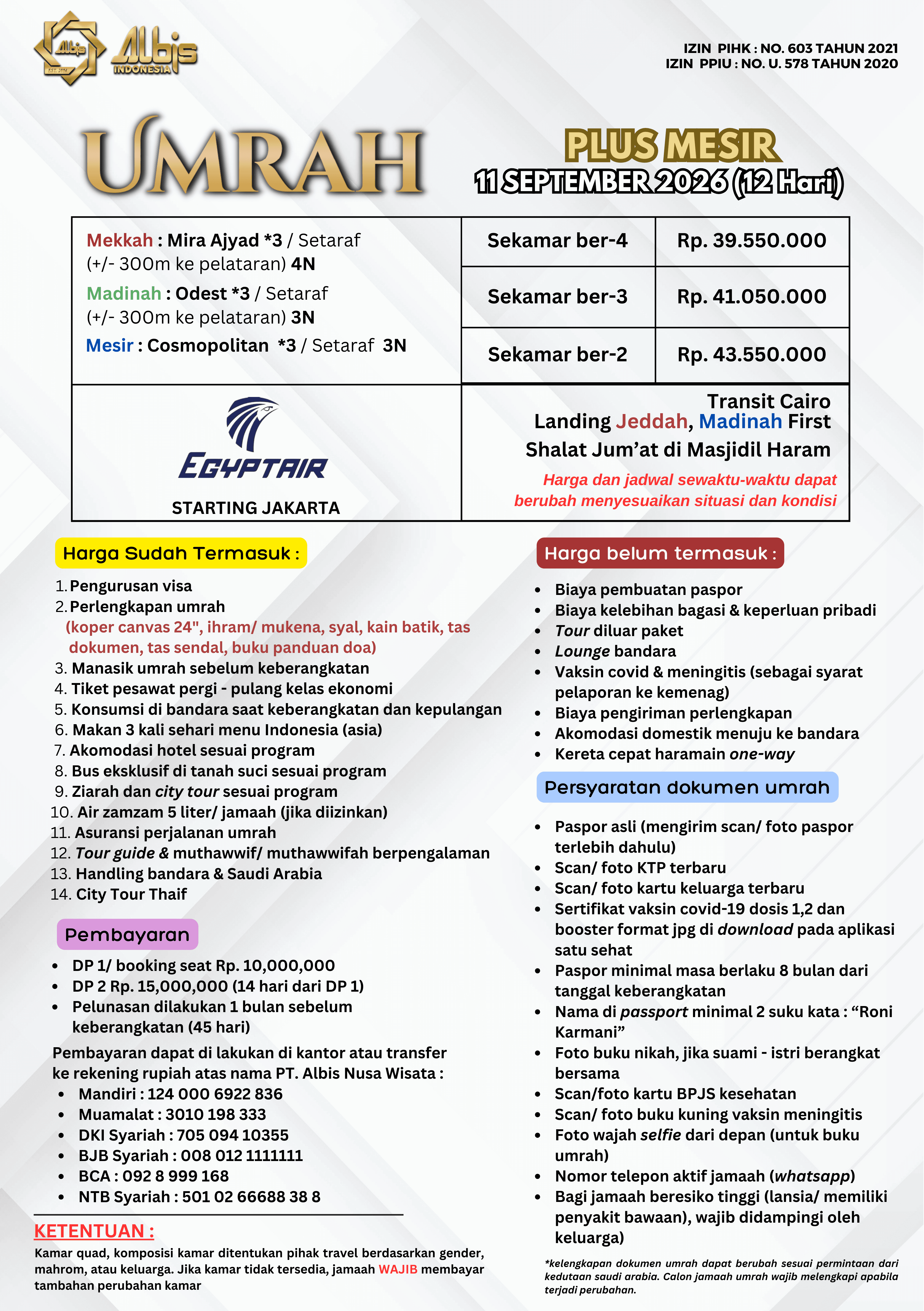 Paket Umrah yang ditawarkan oleh Albis sudah termasuk:
