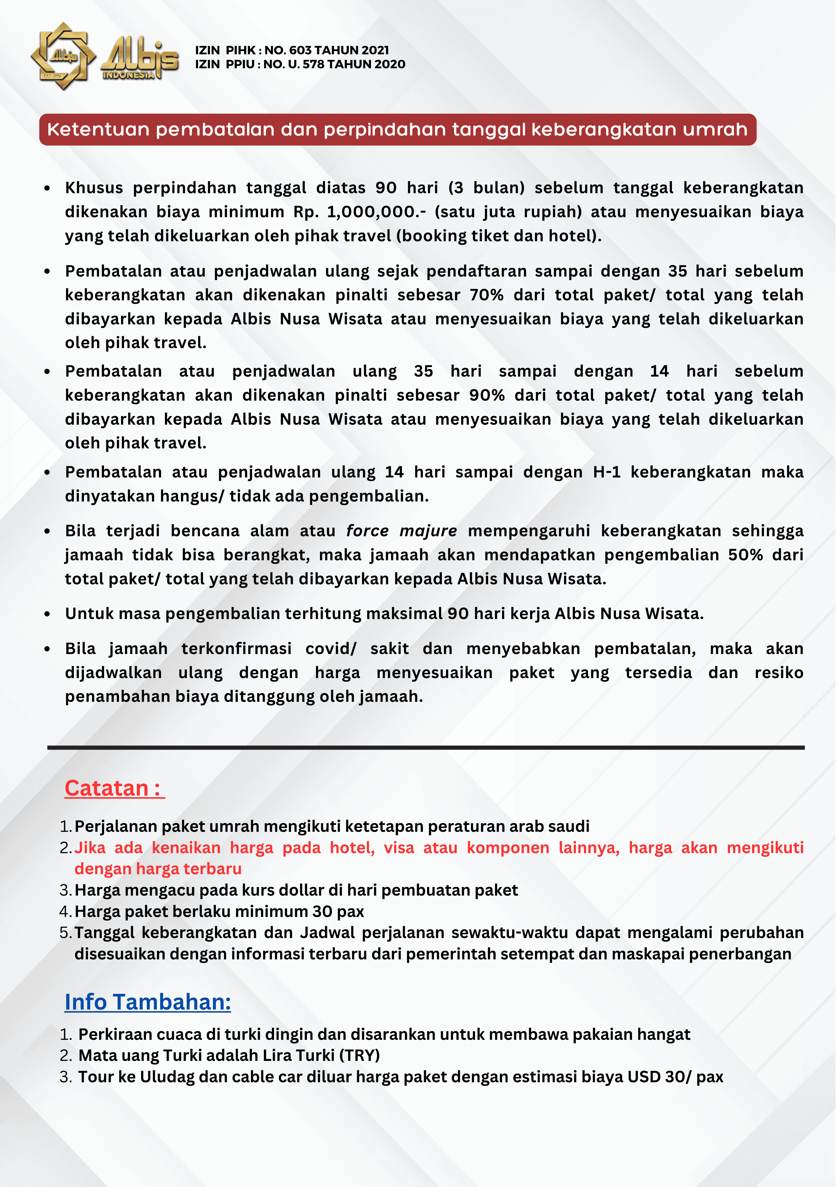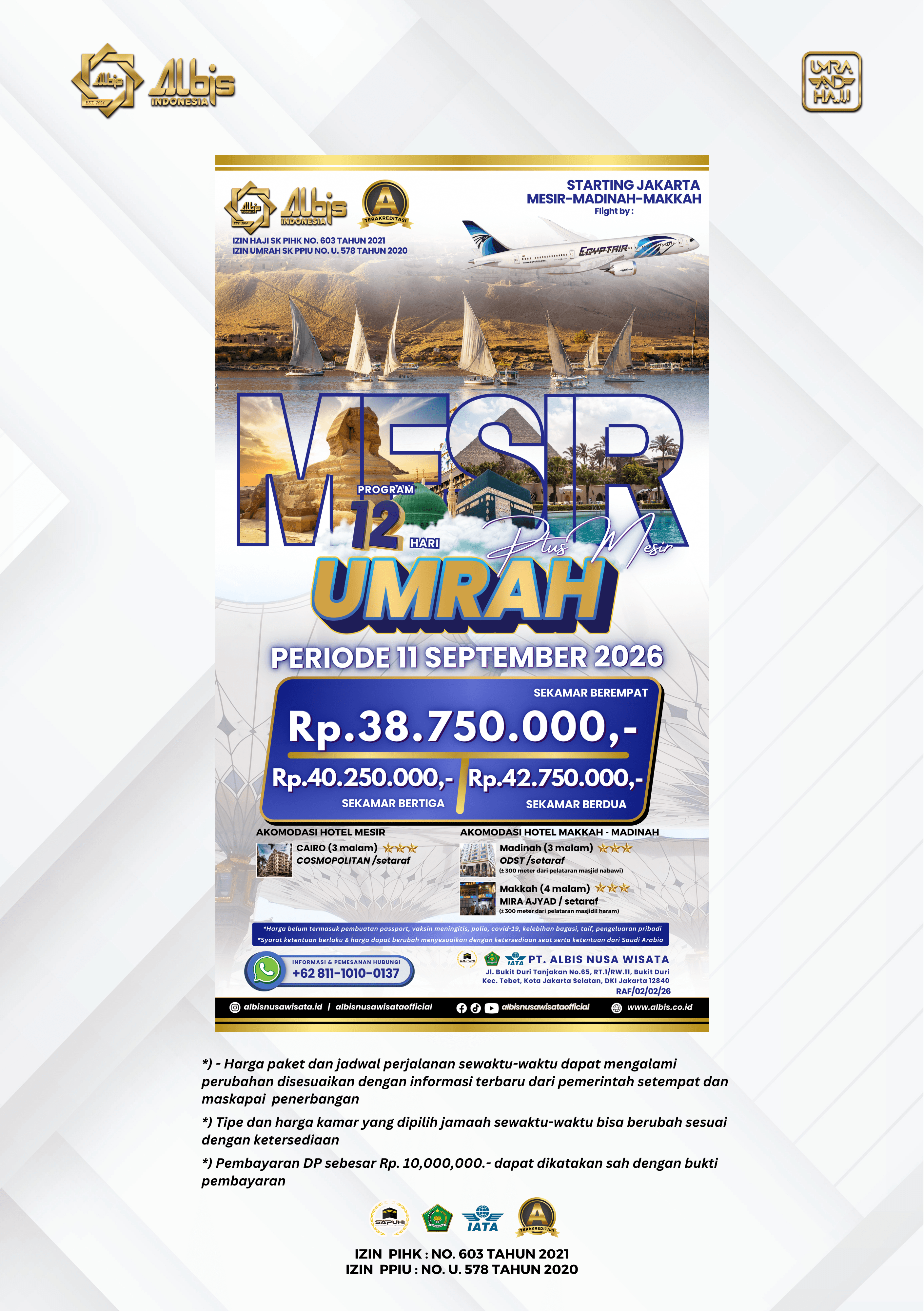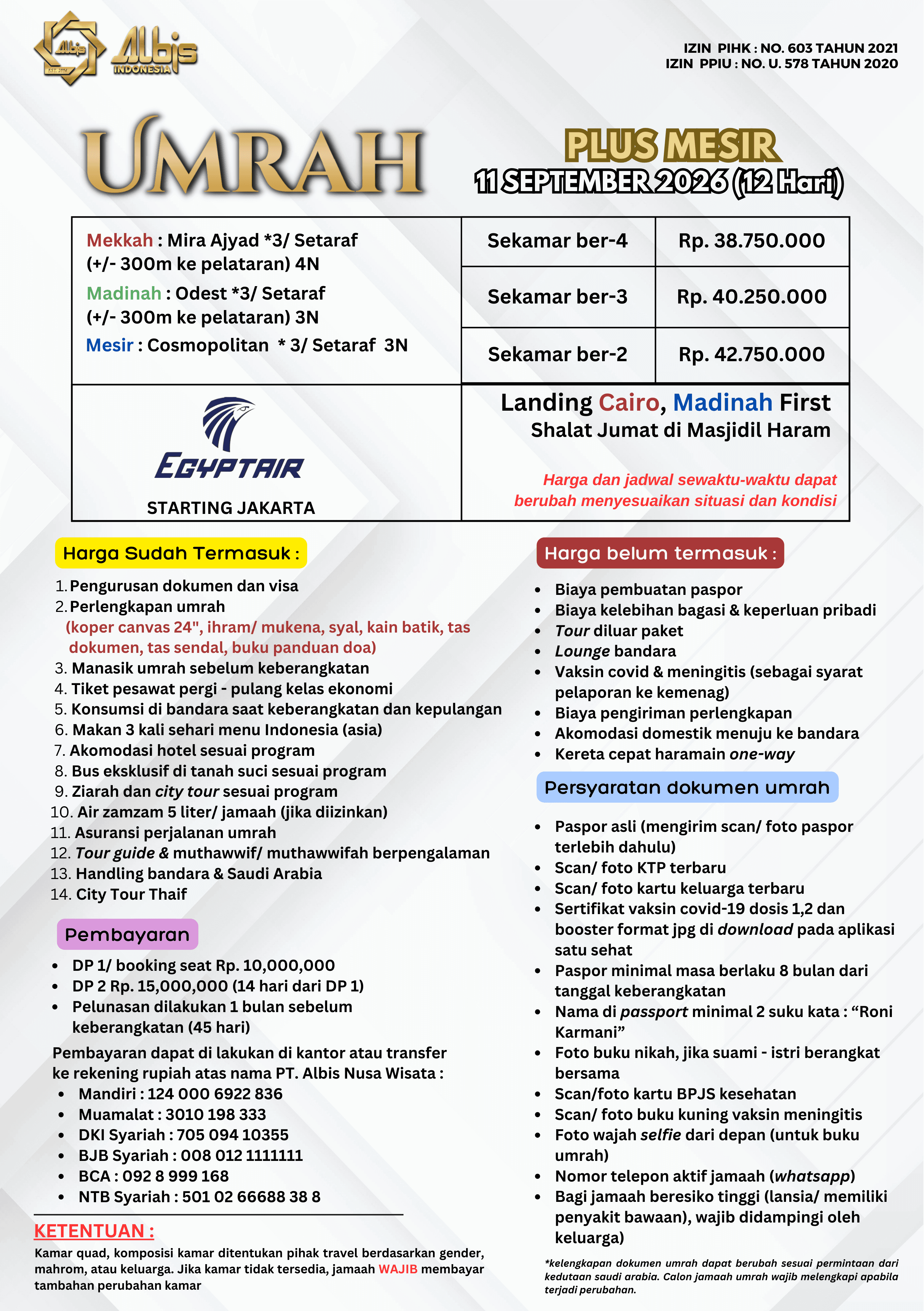 Paket Umrah yang ditawarkan oleh albis sudah termasuk: